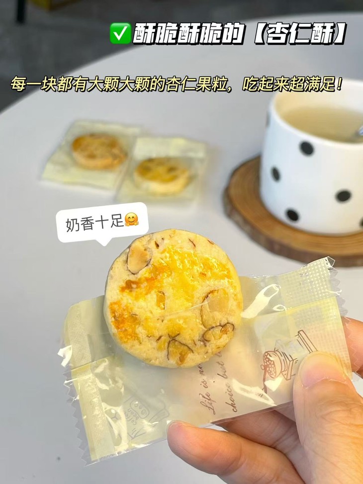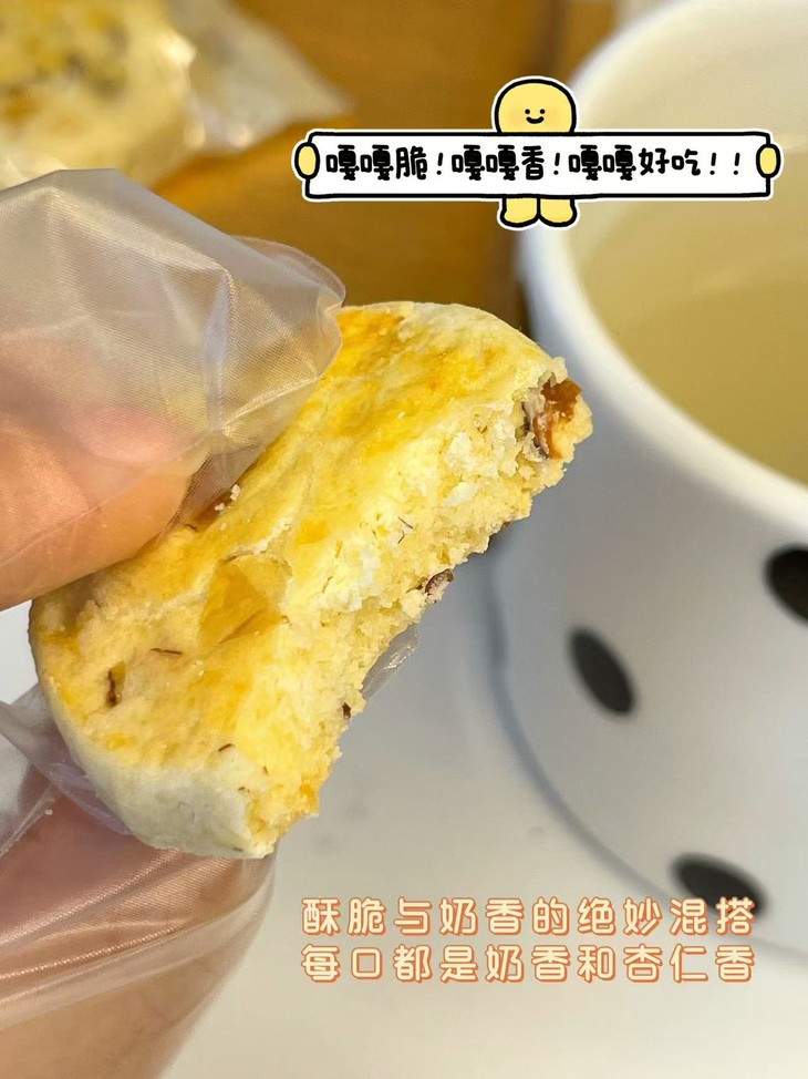 吃起来甜而不腻,酥脆与奶香的绝妙混搭,每口都是奶香和杏仁香,杏仁肉眼可见!