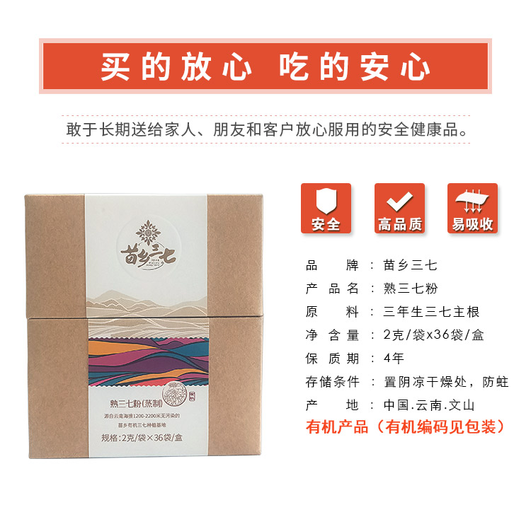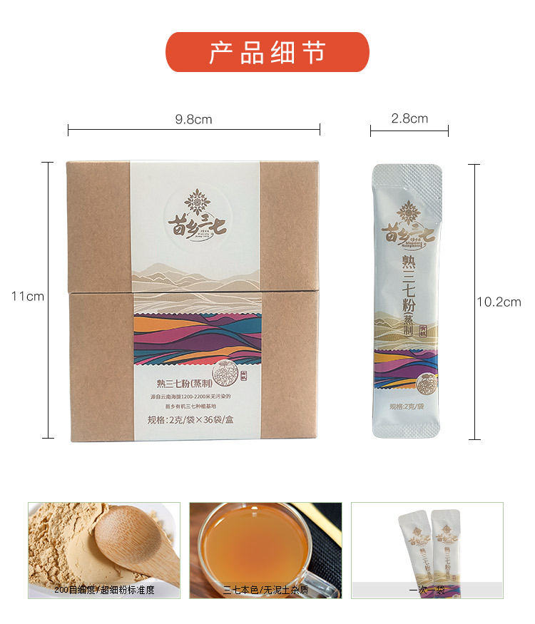 苗乡三七 有机品质熟三七粉超细粉便携装72g/盒 2克*36袋/盒