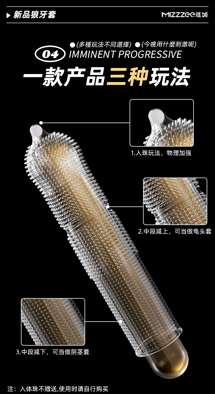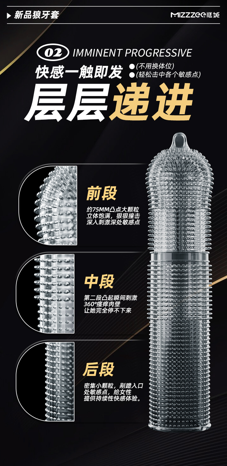 谜姬 肉刺狼牙套快感套颗粒刺激 加长加粗龟头套锁精环 成人情趣性用品