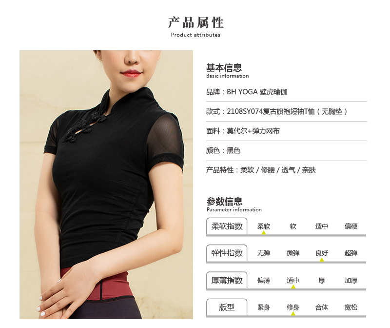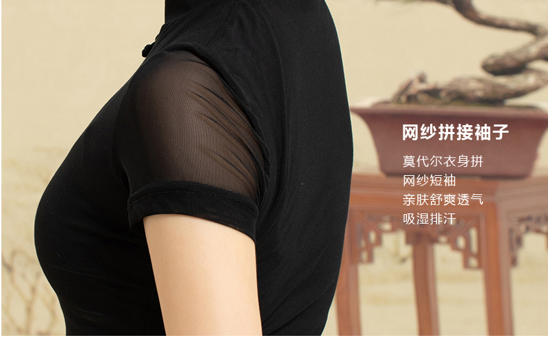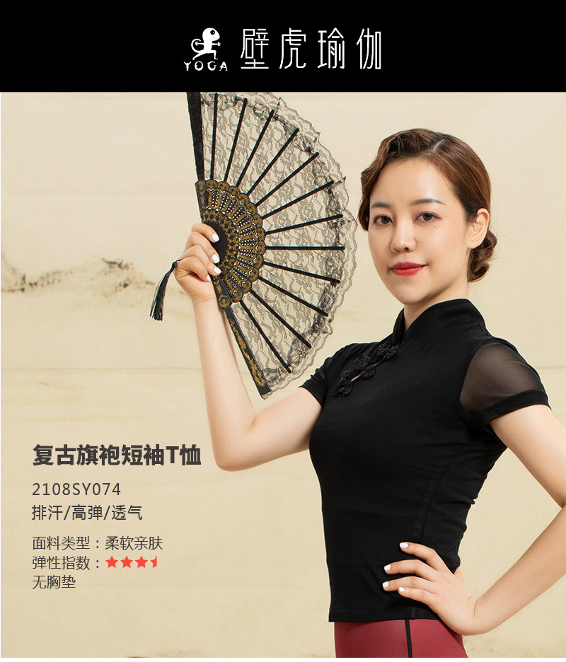【七十二小时发货】壁虎瑜伽【2108SY074】复古旗袍短袖T恤(无胸垫)