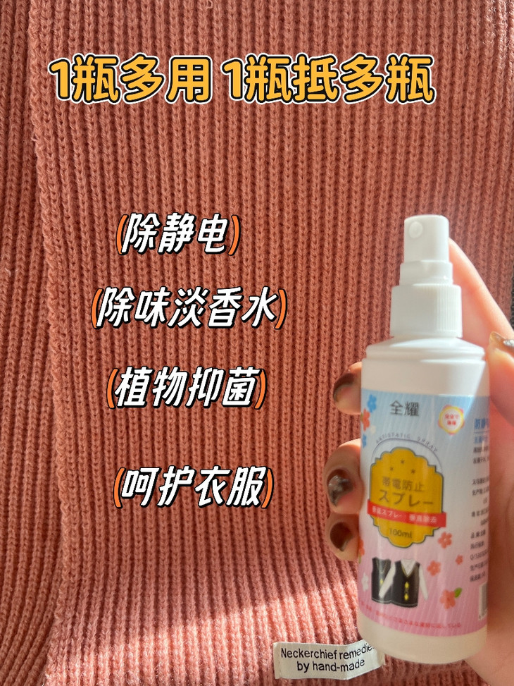 真的是秋冬必备的好物! 特别是喜欢穿毛衣的宝子应该特别懂! 毛衣穿久了很容易起球,特别不美观 还有碰到别人或者拿点什么, 突然就被电一激灵 穿脱时还有静电噼里啪啦的! 用这个防静电喷雾 轻轻一喷分分钟远离静电,远离噼里啪啦! 毛衣控闭眼入真的!