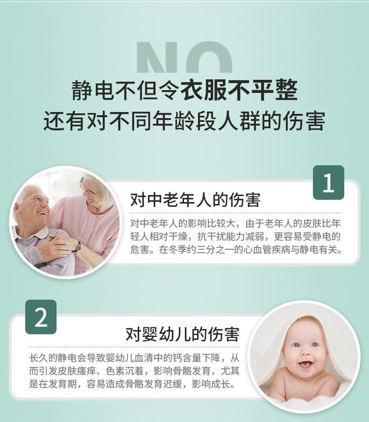 其实静电对人体的伤害却是极大的‼ 1、静电会导致血钙量流失,对于正在生长发育的儿童、老年人以及孕妇和乳母会带来很多不良影响 2、过多的静电影响还会让人出现头晕、头痛烦躁,甚至食欲不振、精神恍惚等症状 3、在有易燃易爆炸物体的地方,人体带有静电,还极易引发火灾甚至爆炸💥