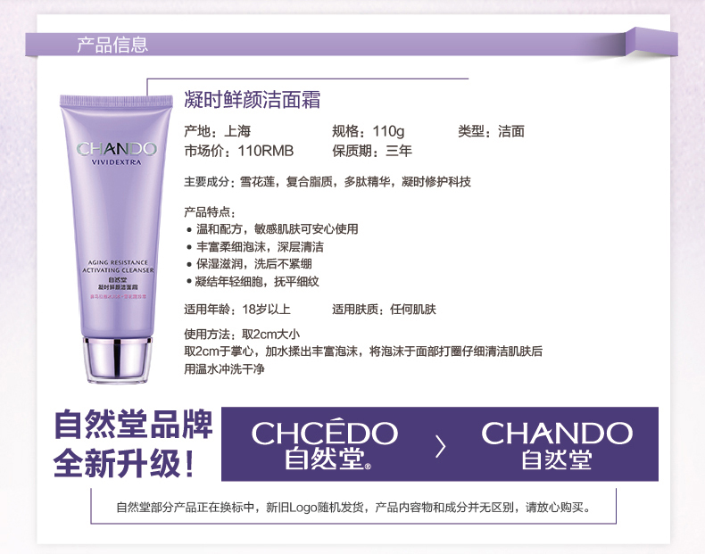 【预售 急单慎拍】自然堂凝时鲜颜洁面霜 125g 原价110元