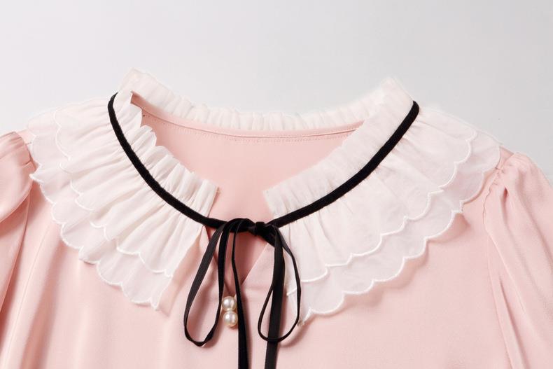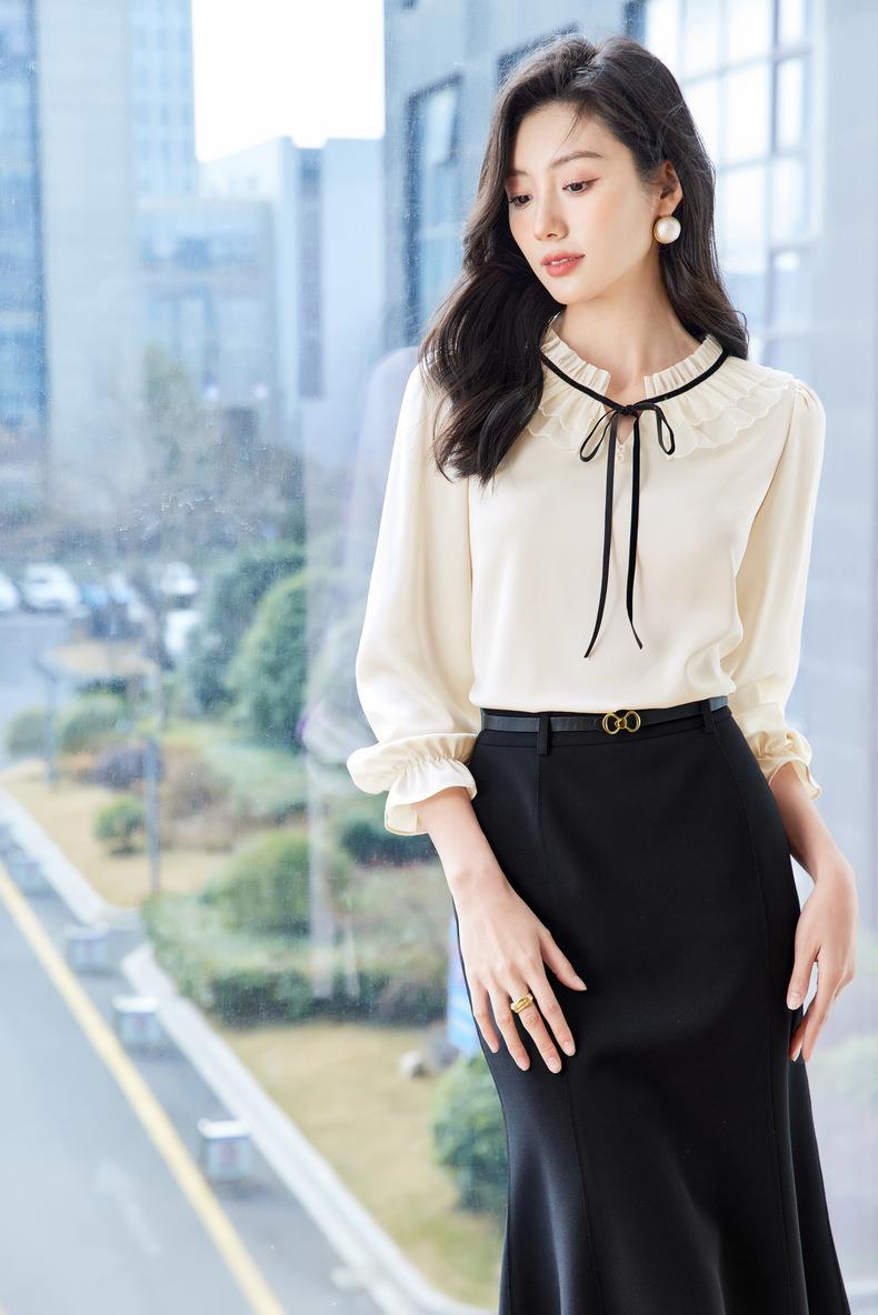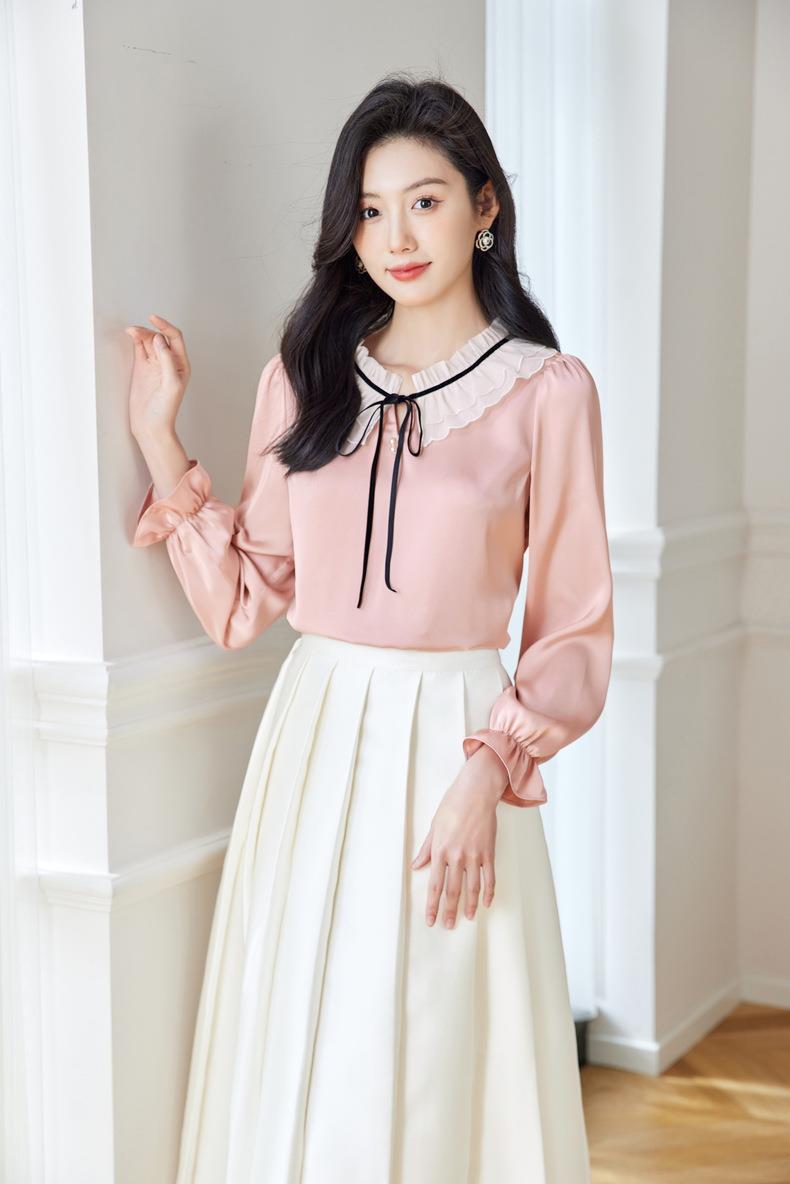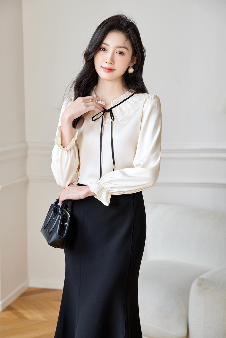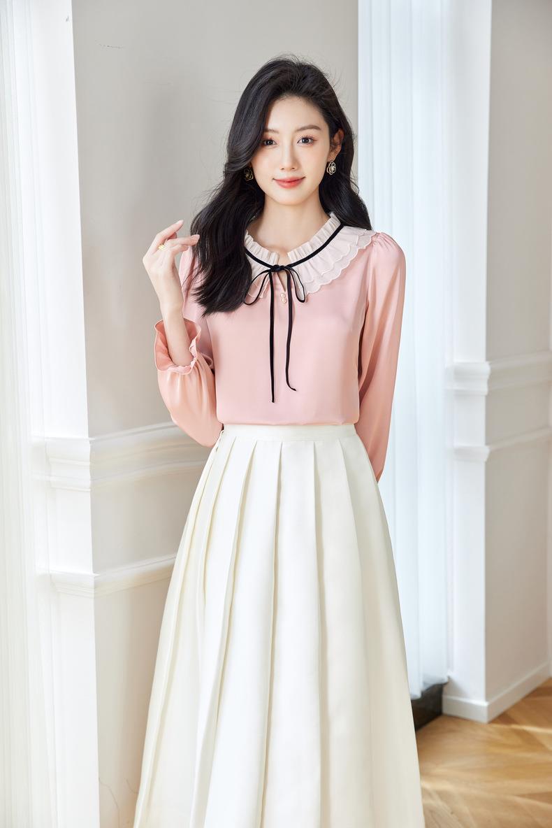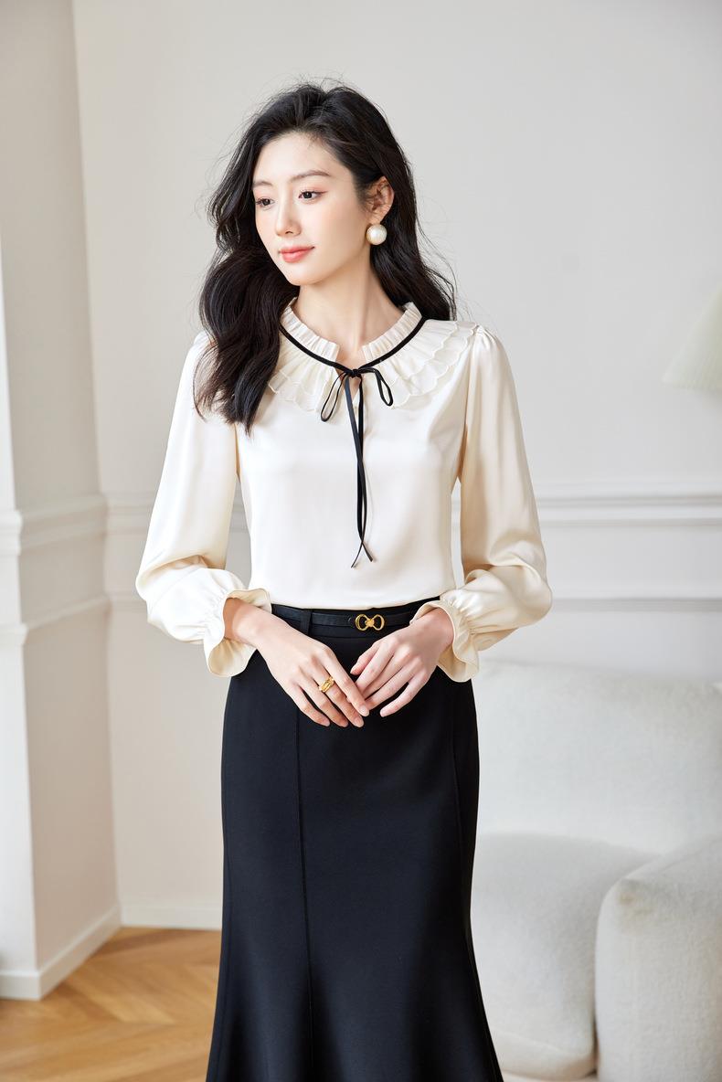 蝴蝶结雪纺衫女上衣2024春装新款洋气小衫长袖女衬衣0598