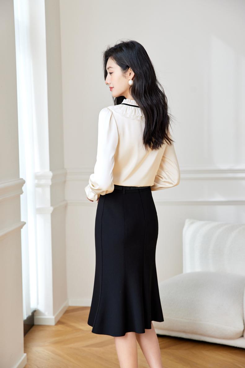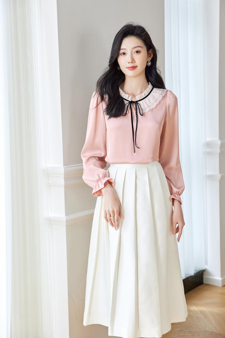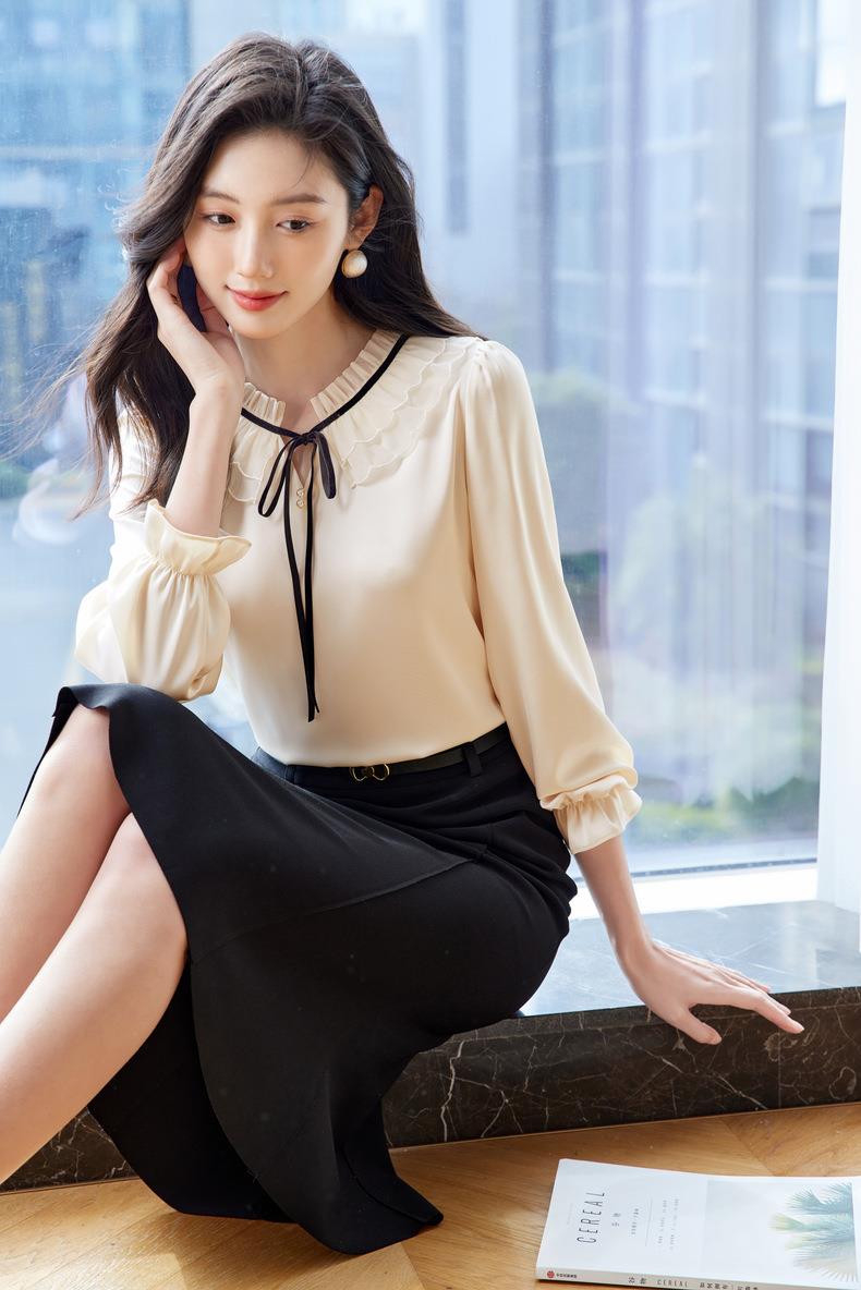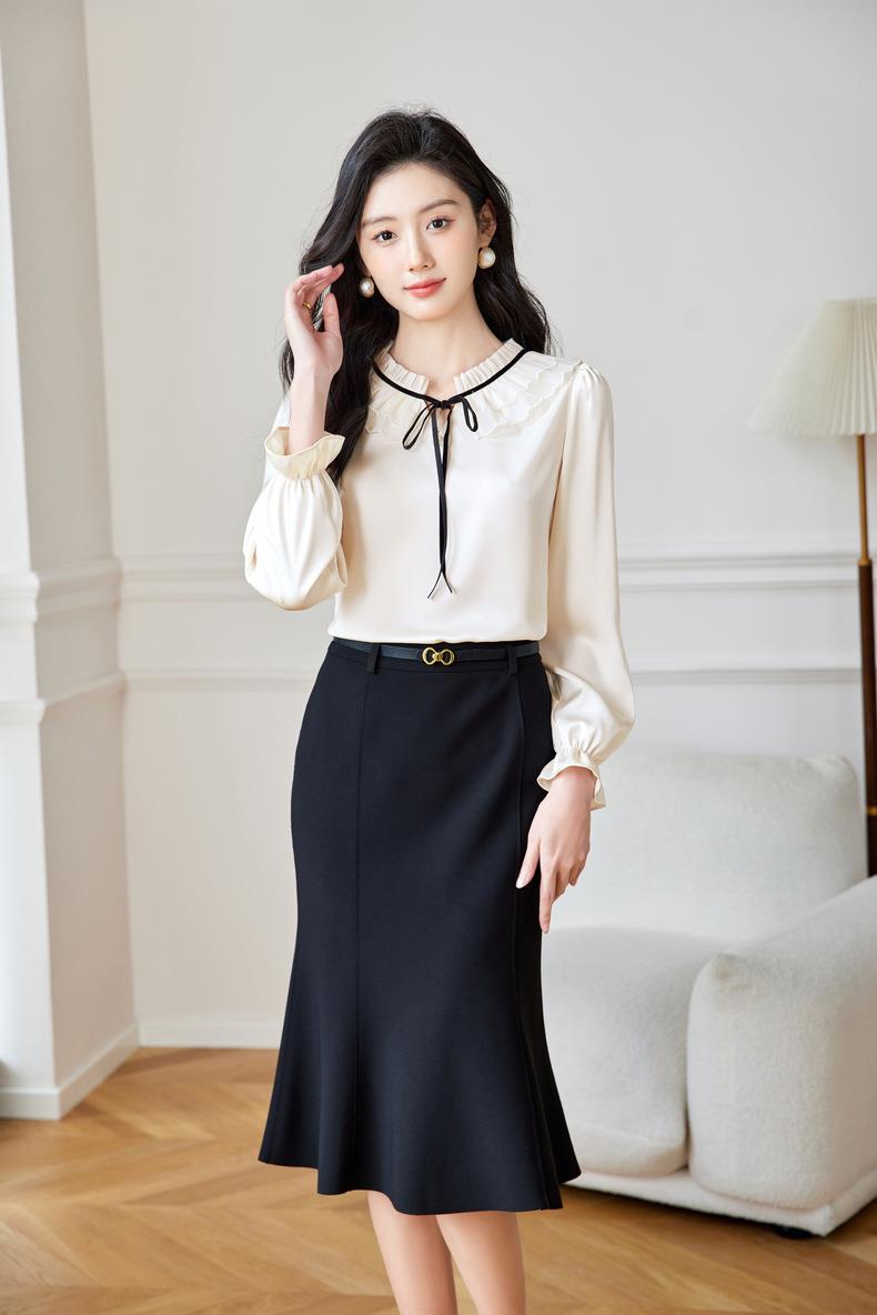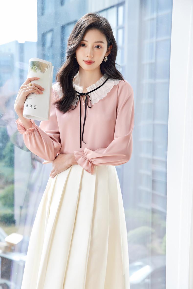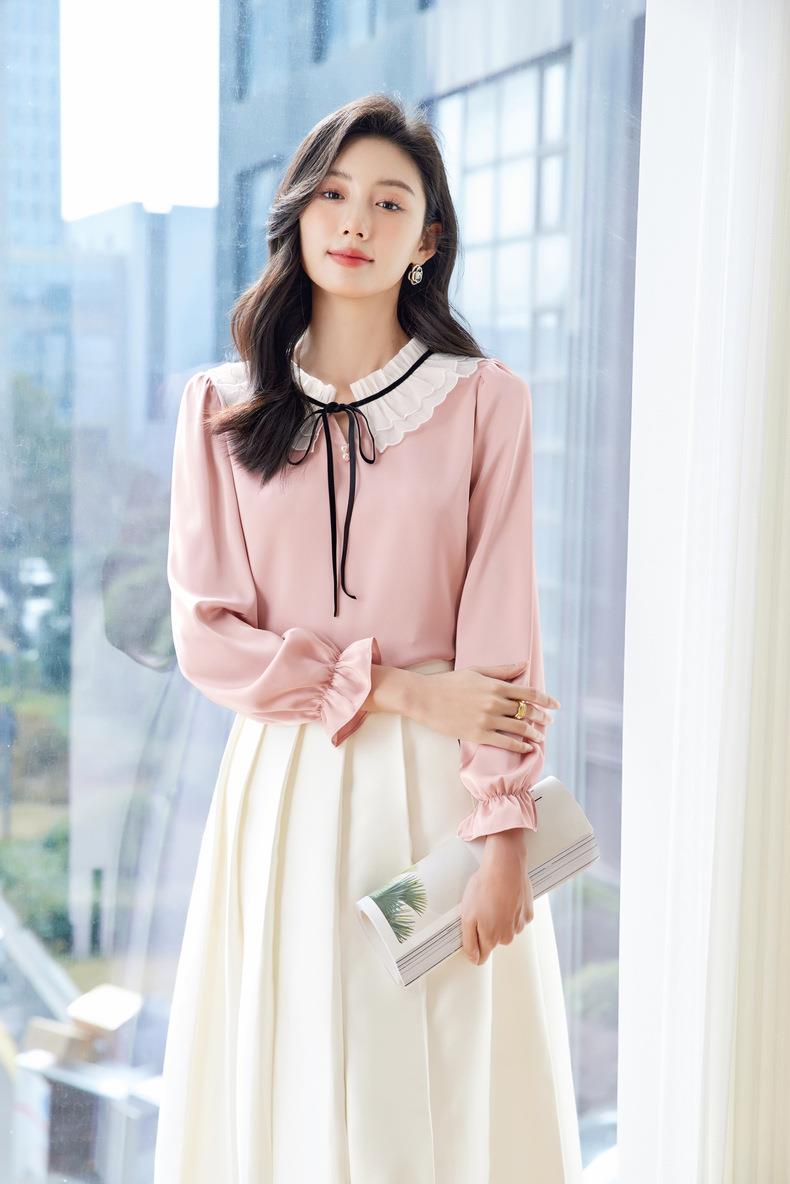 蝴蝶结雪纺衫女上衣2024春装新款洋气小衫长袖女衬衣0598