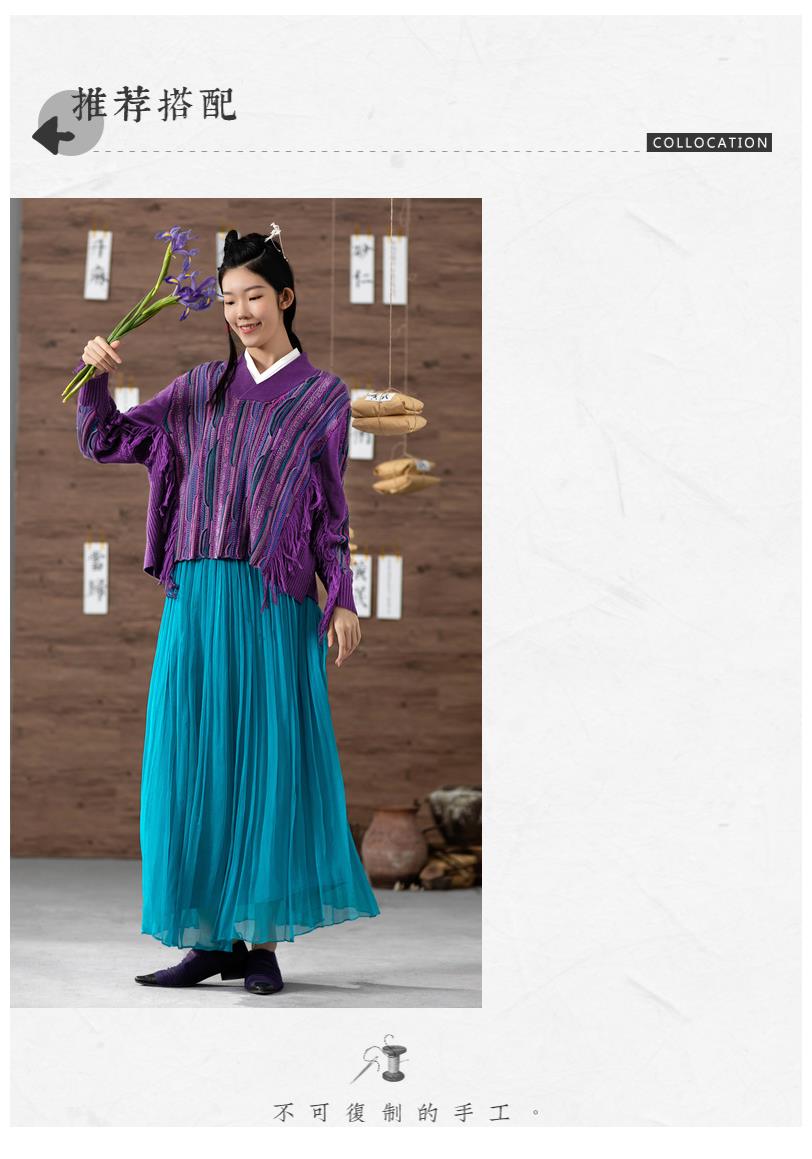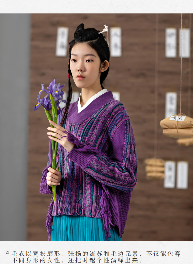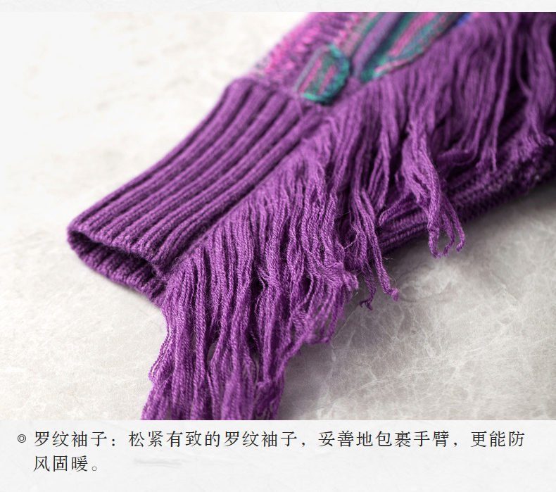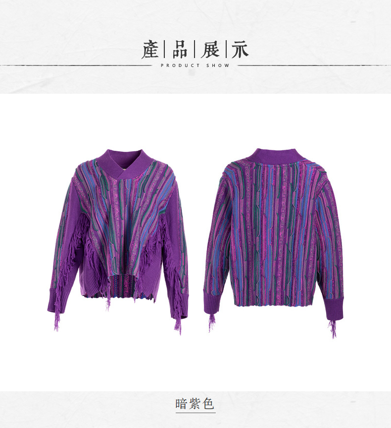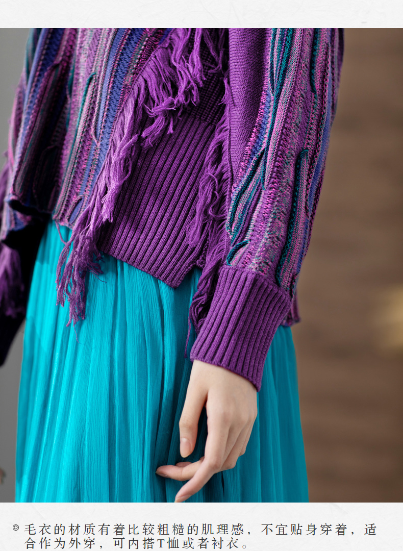 【林栖设计小店】2020秋冬新款暗紫色交襟V领复古短款流苏百搭针织毛衣女