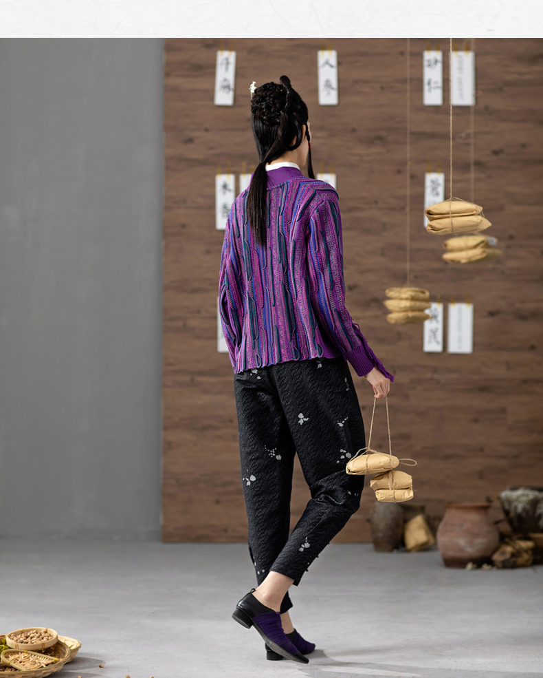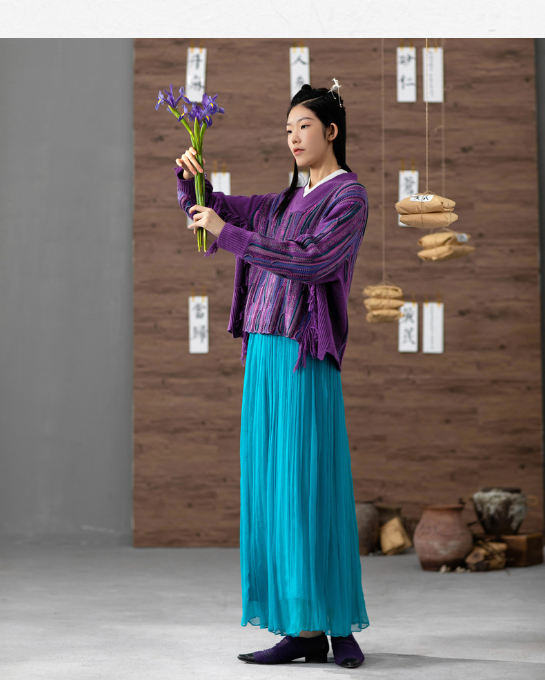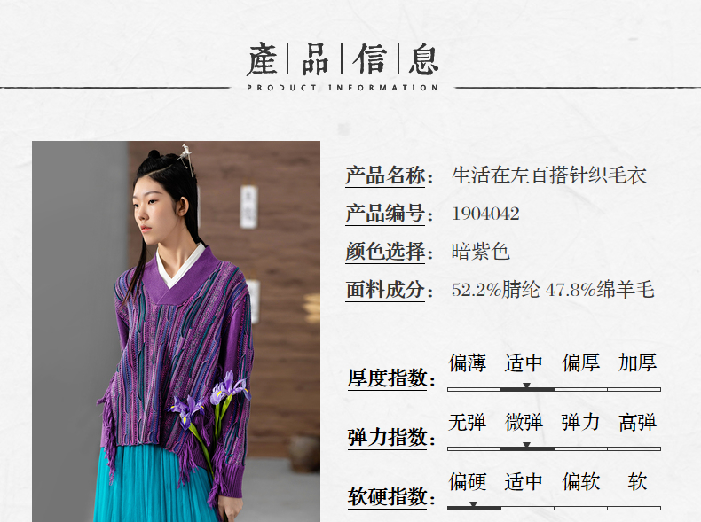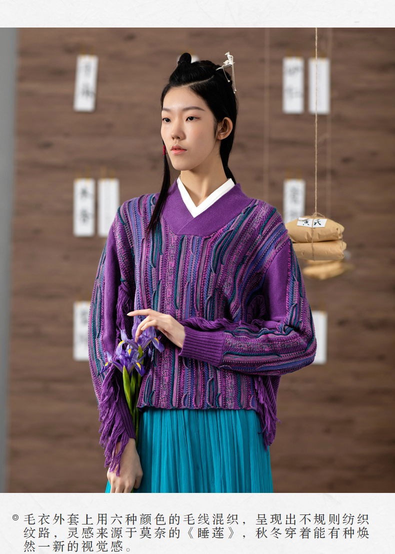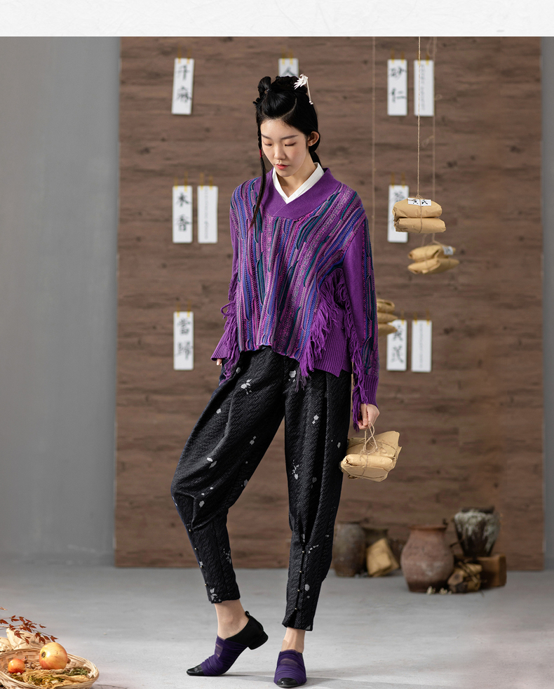 【林栖设计小店】2020秋冬新款暗紫色交襟V领复古短款流苏百搭针织毛衣女