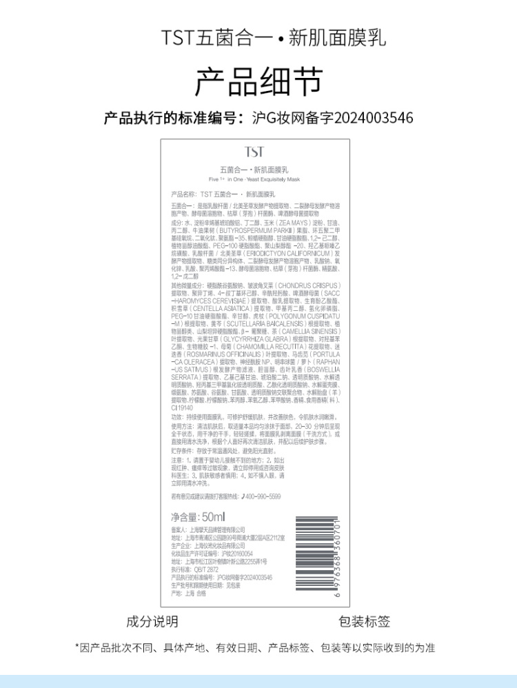 TST五菌合一新肌面膜乳50ml