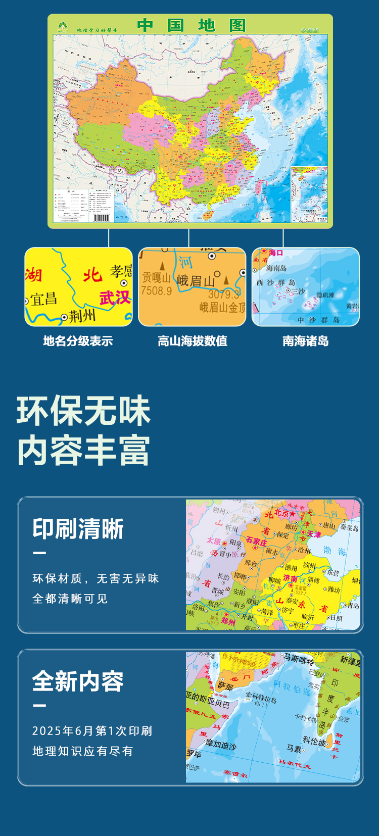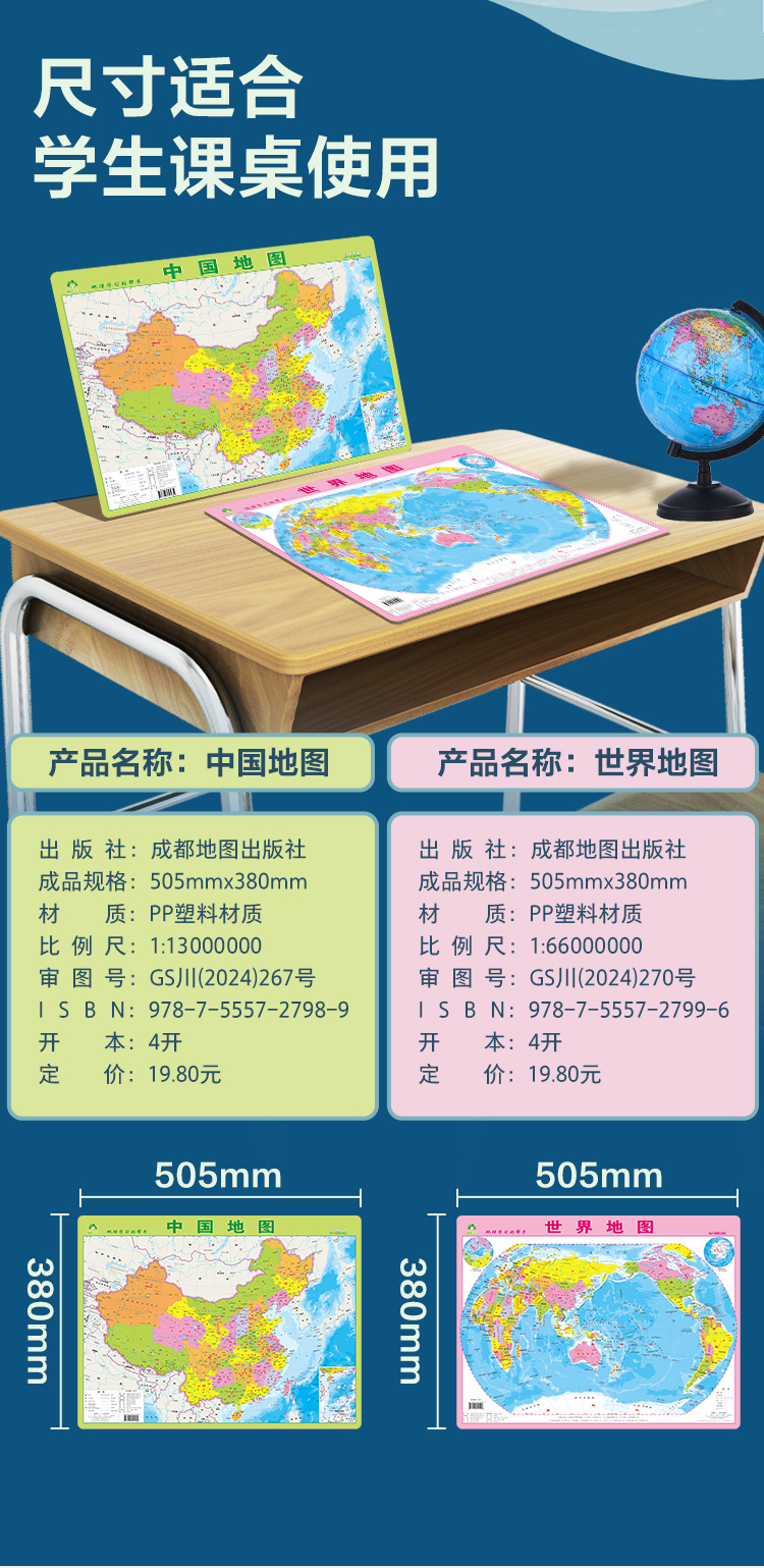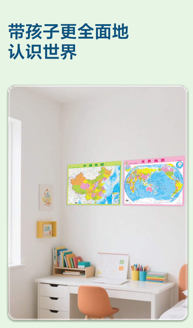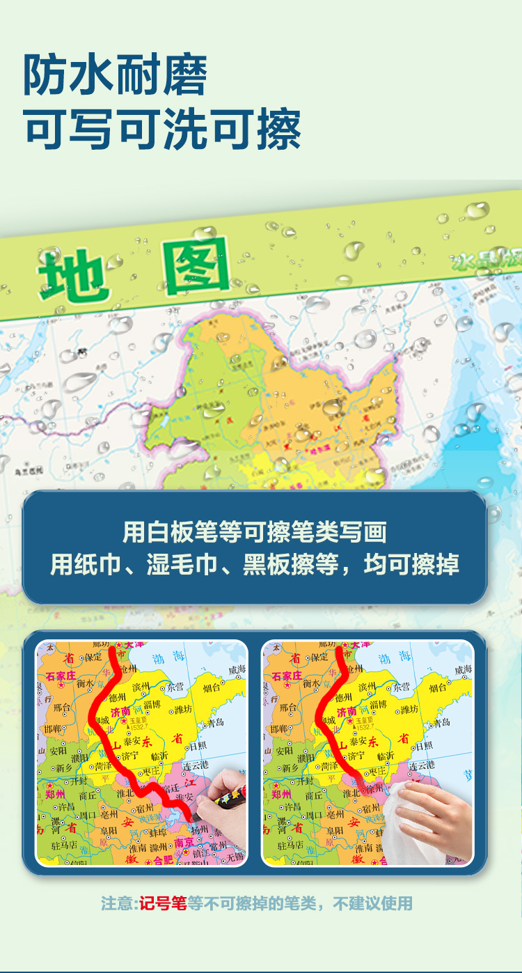 水晶版中国世界地图可水洗可擦写防水耐磨撕不烂让孩子全面认识世界办公家庭学生专用地理知识全面学习可挂墙环保无味
