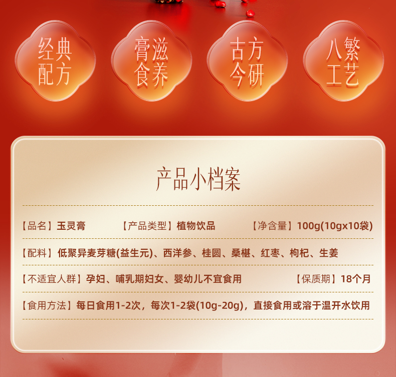 【官方正品】云南白药有这一方玉灵膏10g*10袋便携装西洋参龙眼肉桑椹红枣生姜枸杞滋养女性泡水速溶无渣