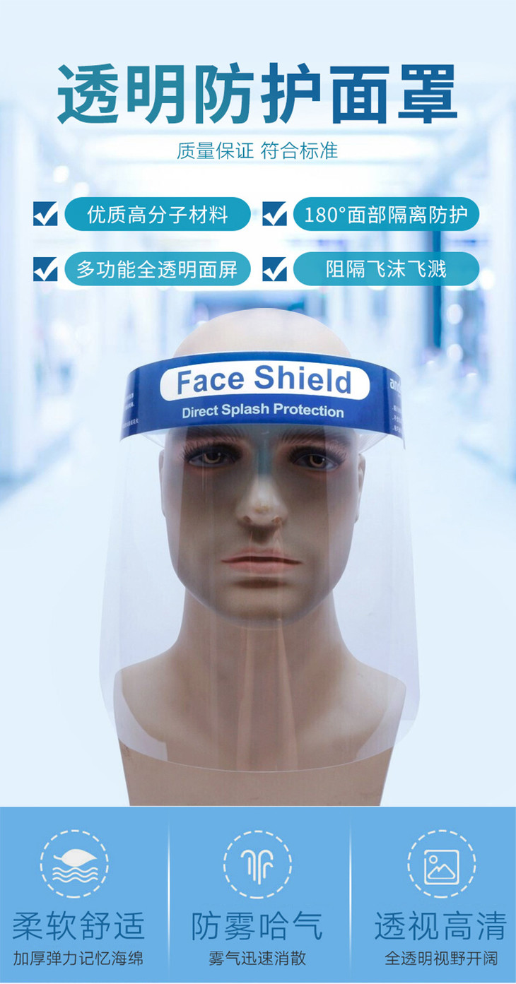 熊诺 防护透明面罩防护面罩透明塑料防飞沫唾沫防护戴式遮脸放防风面罩zmzxxlfhmz