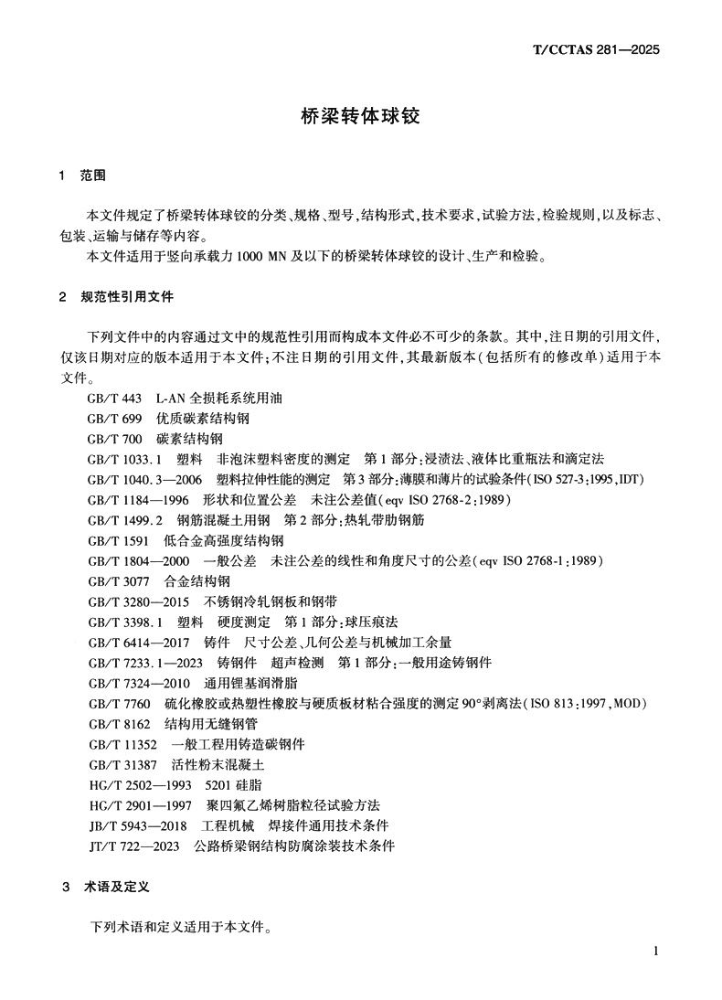 桥梁转体球铰T/CCTAS 281—2025