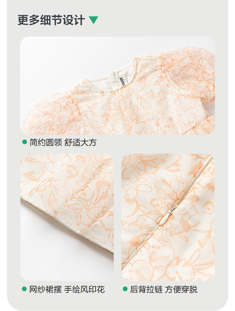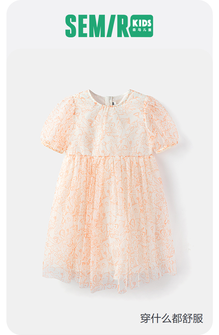 森马儿童连衣裙新款时尚洋气印花裙子夏季儿童女童飘逸网纱裙