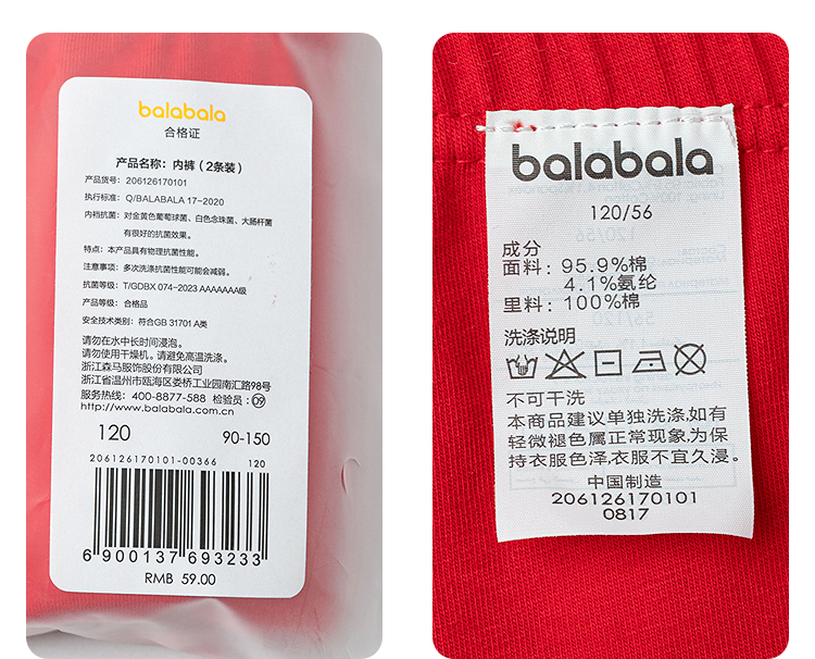 【商场同款】巴拉巴拉儿童内裤男童不夹pp抗菌裆四角裤亲肤两条装