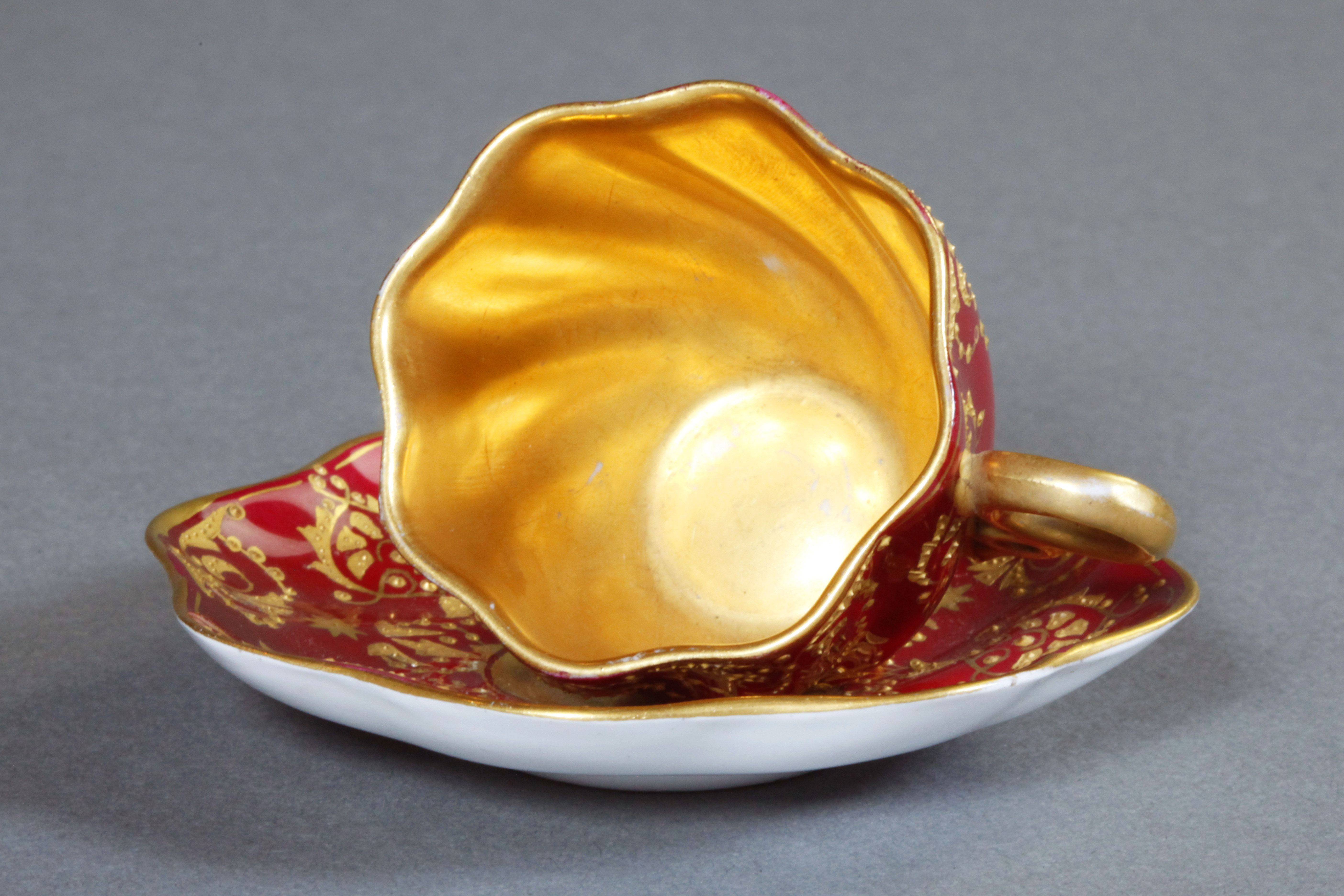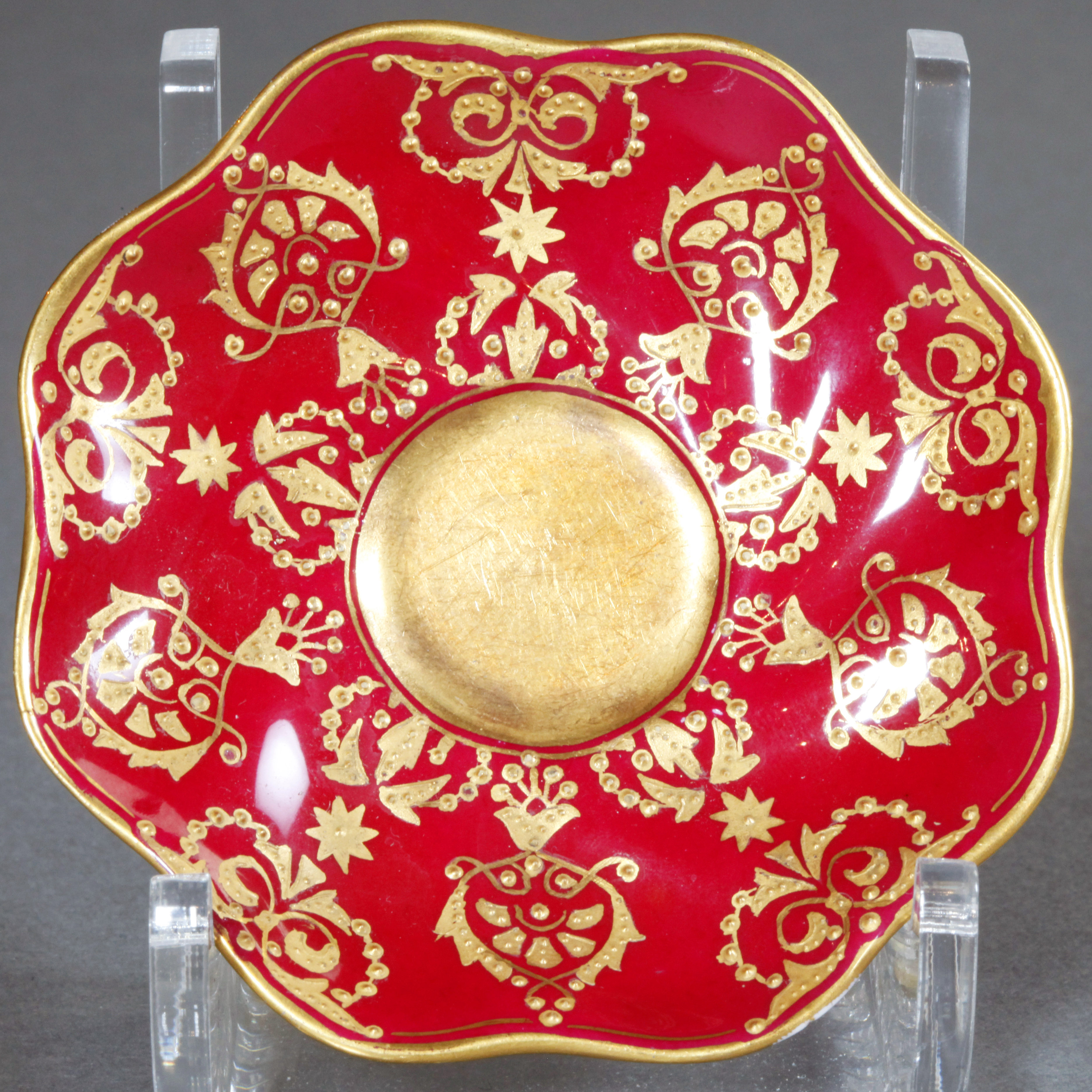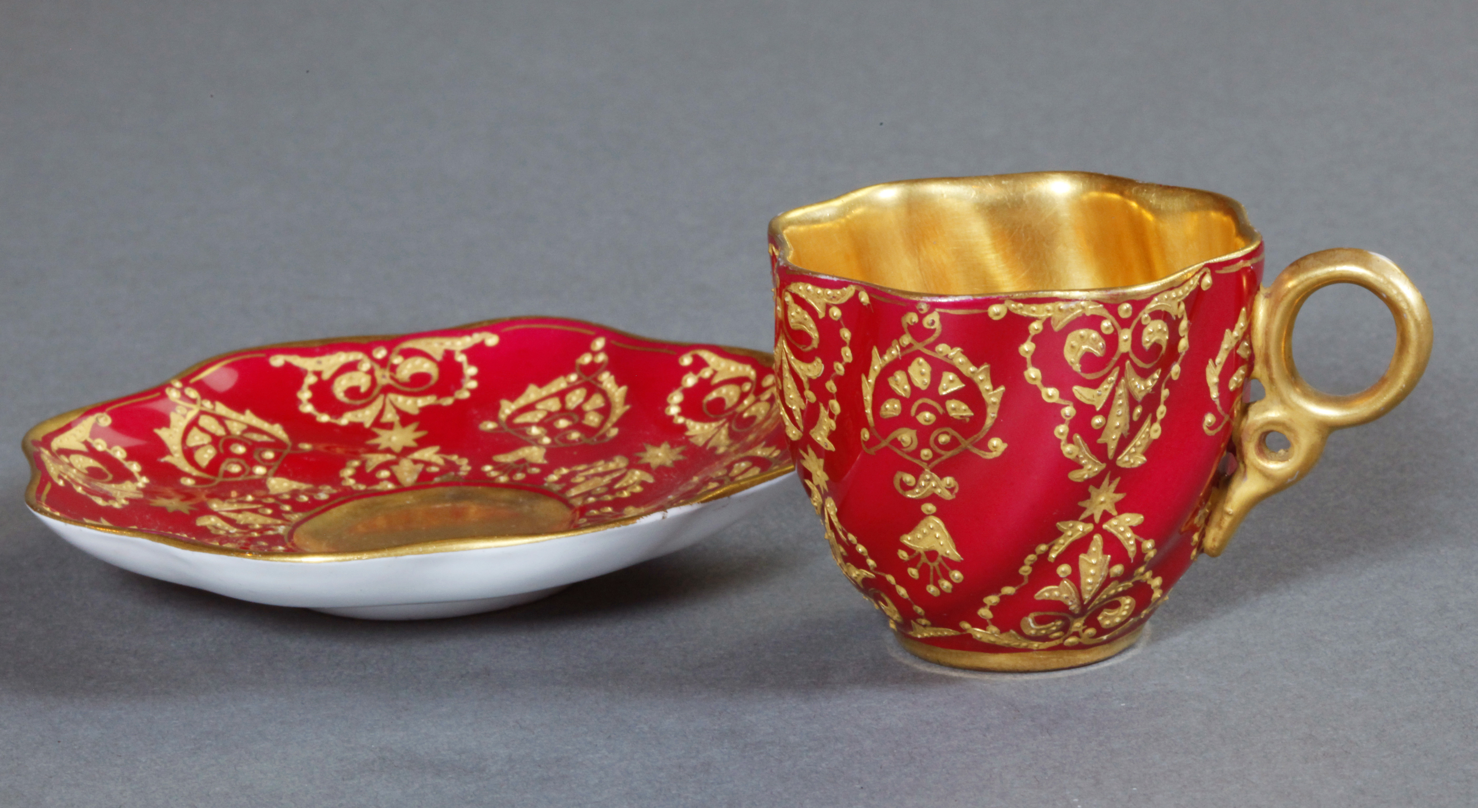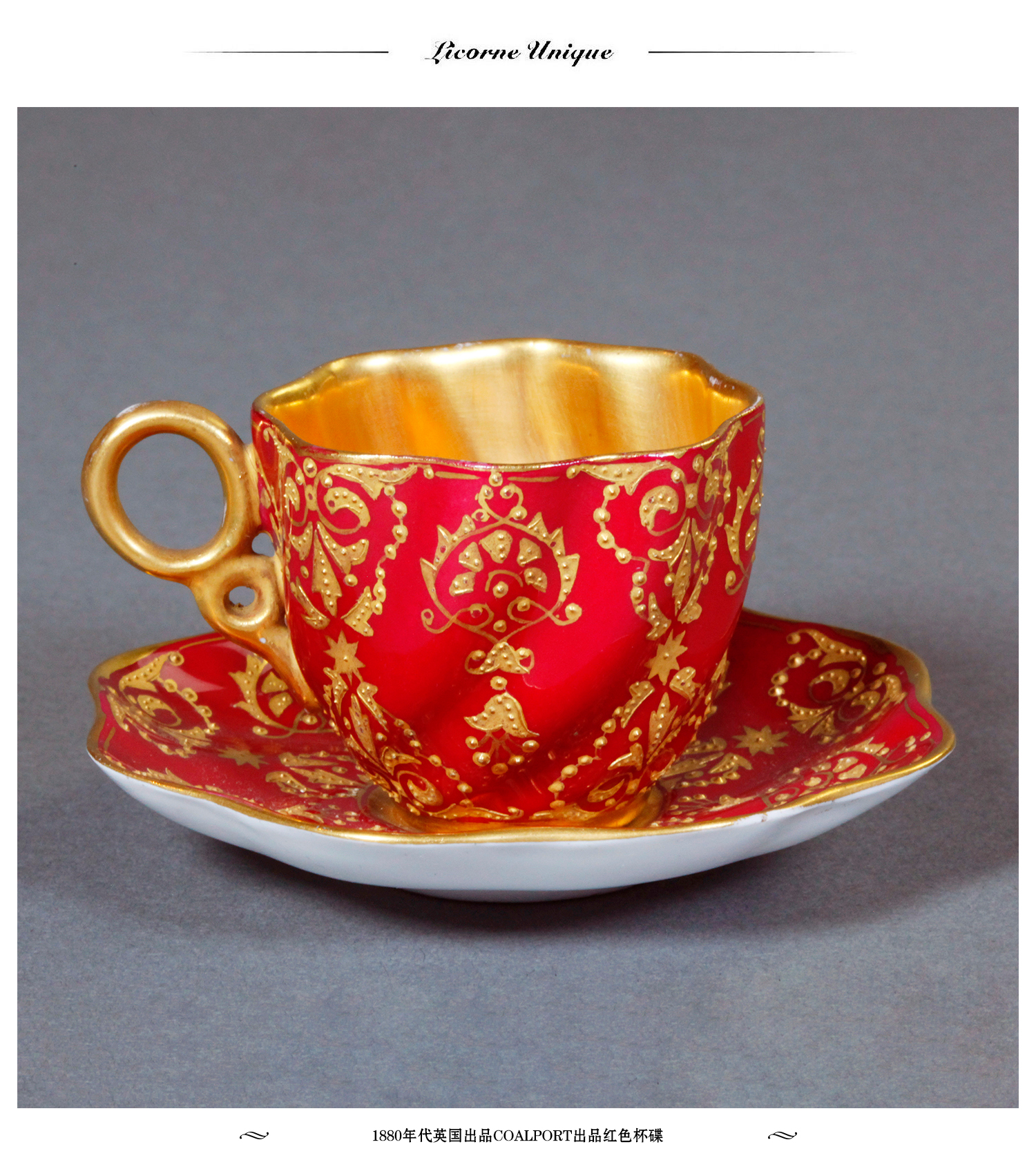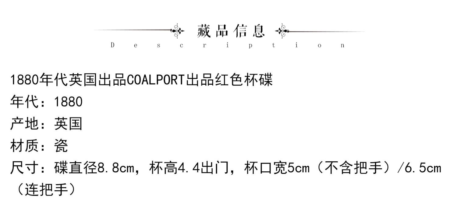 独角鹿西洋古董1880年代英国出品COALPORT出品红色杯碟下午茶杯碟