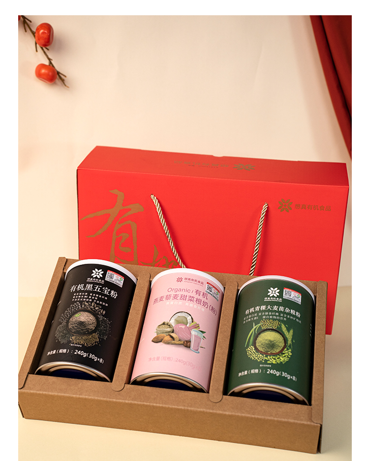 【想真有机谷粉礼盒3合1】代餐粉 有机黑五宝粉+有机青稞大麦苗杂粮粉+有机燕麦藜麦甜菜根奶(粉)+有机玫瑰六福粉-AA