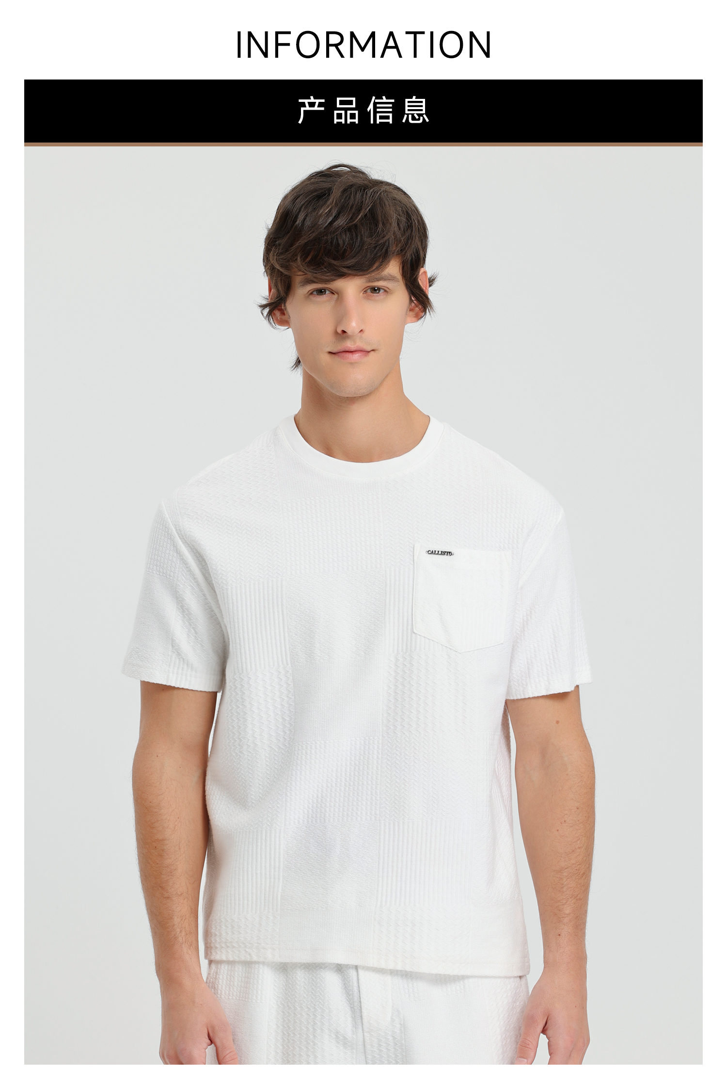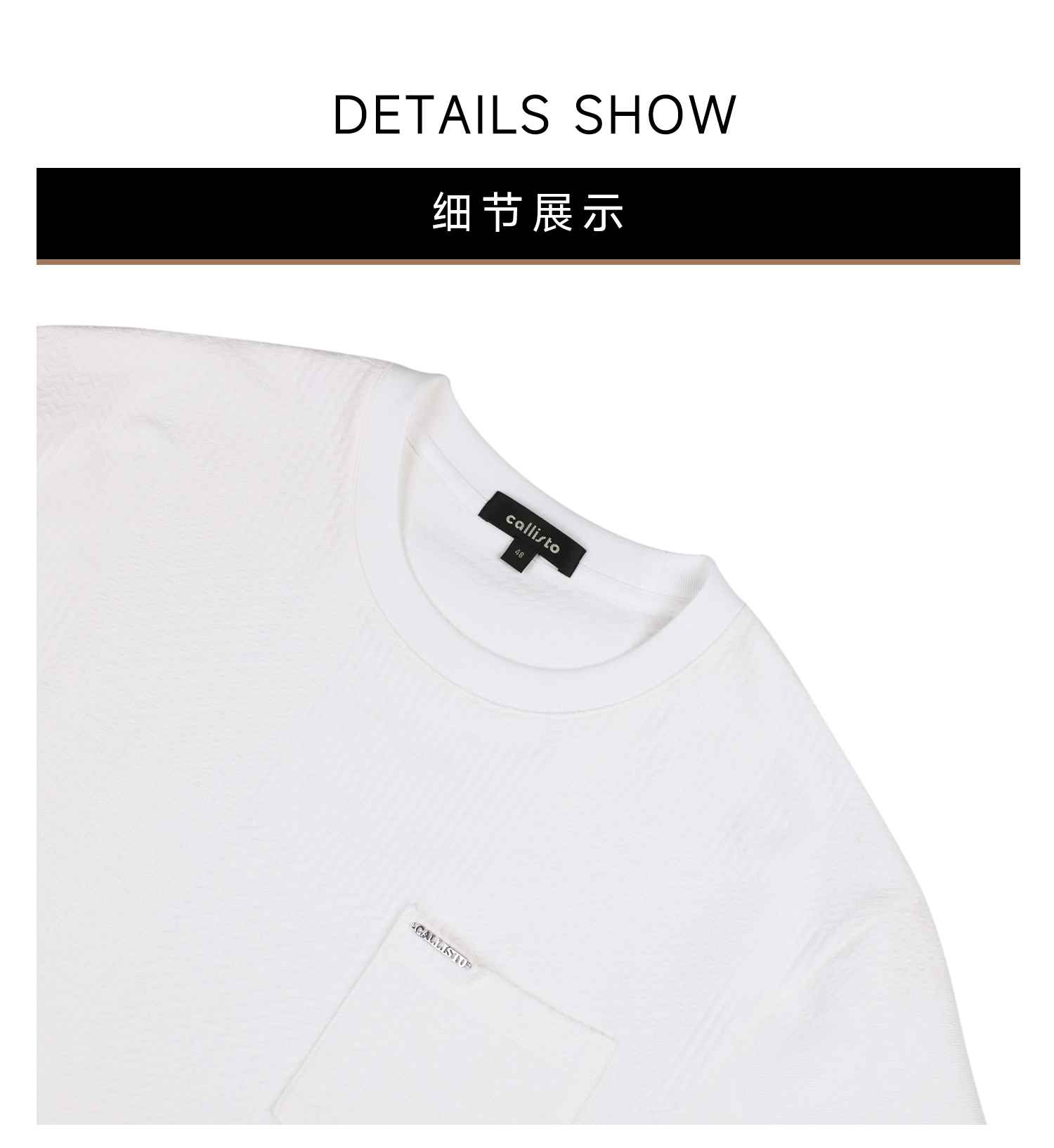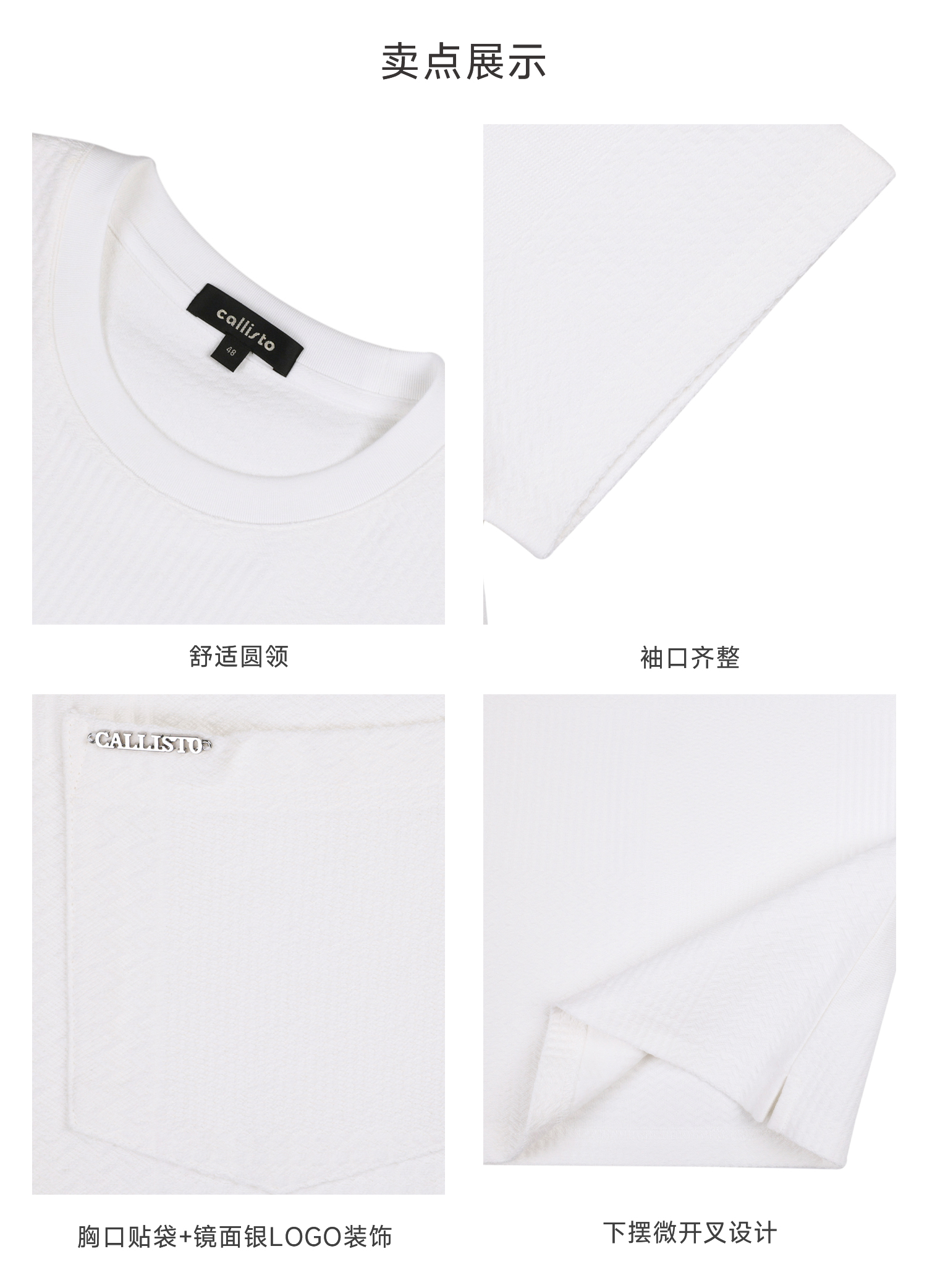 callisto白色重磅纯棉时尚立体提花肌理T恤
