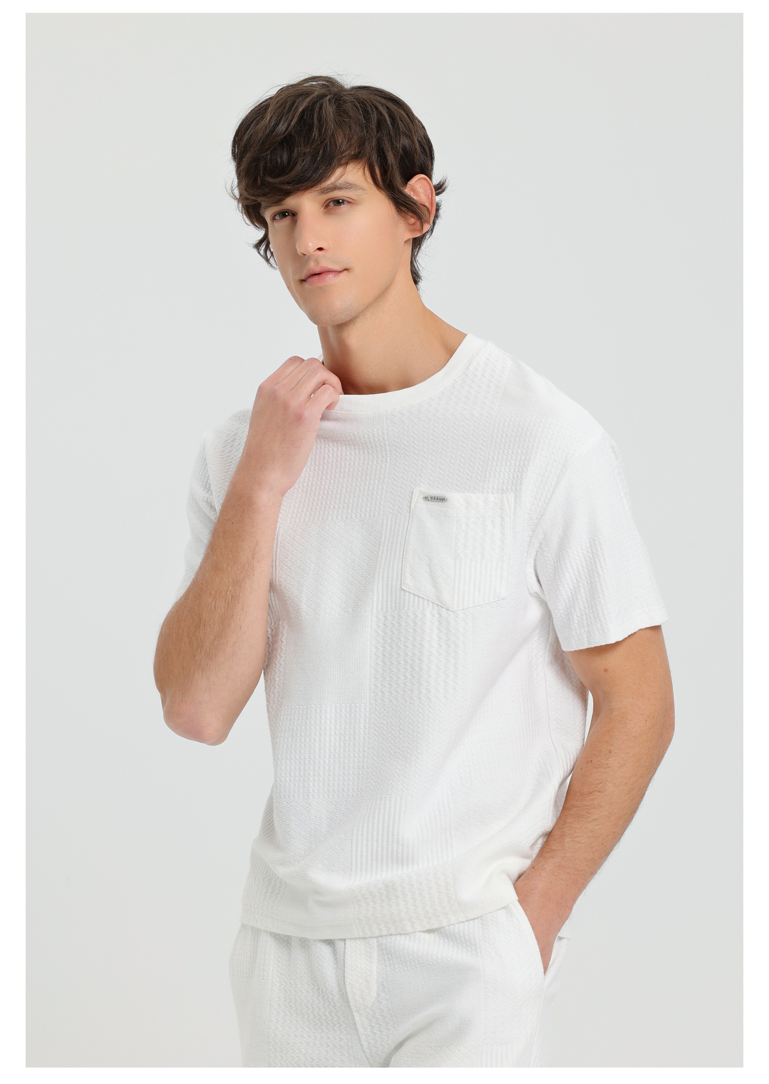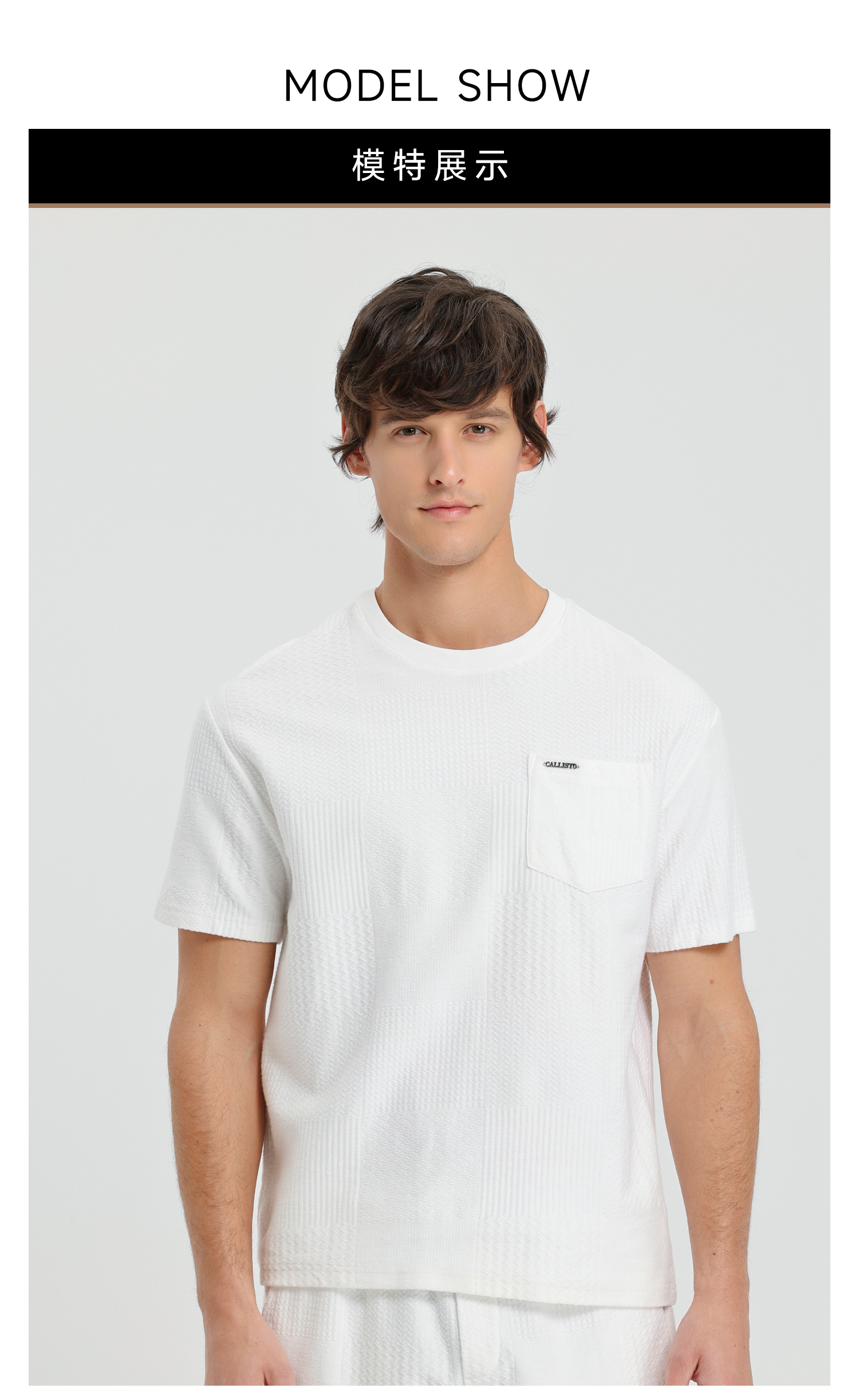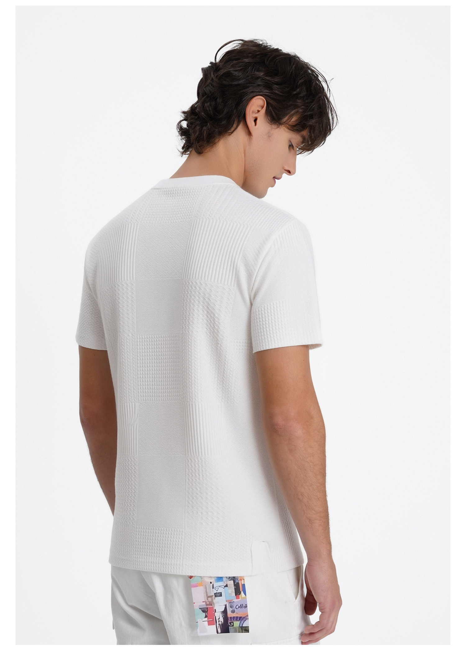 callisto白色重磅纯棉时尚立体提花肌理T恤