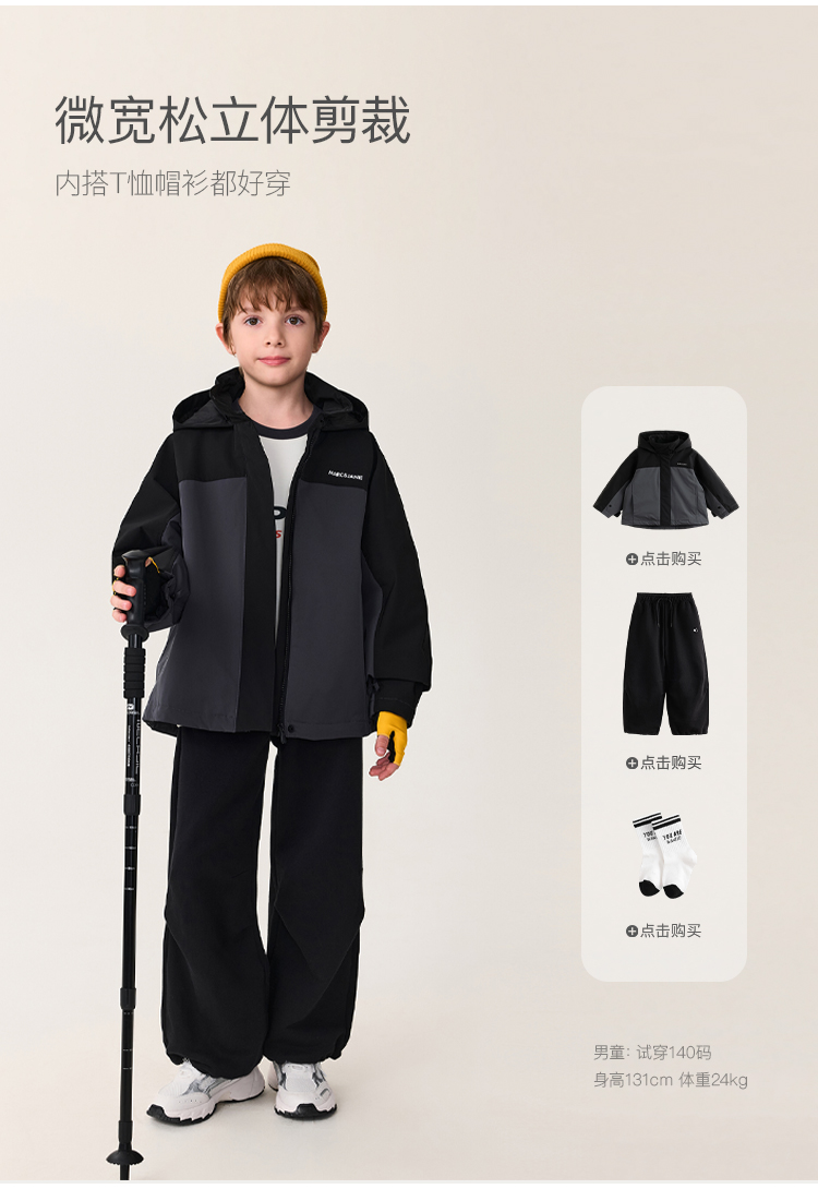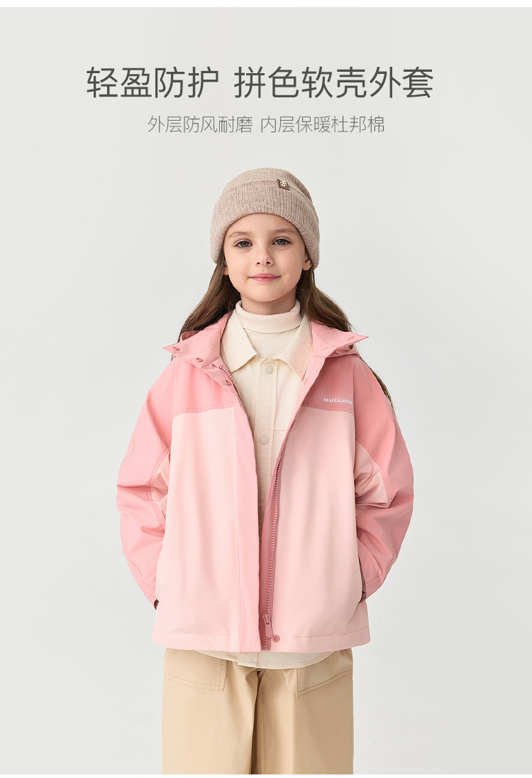 【无氟防泼水】马克珍妮男女童拼色软壳外套2025年秋装新款551659