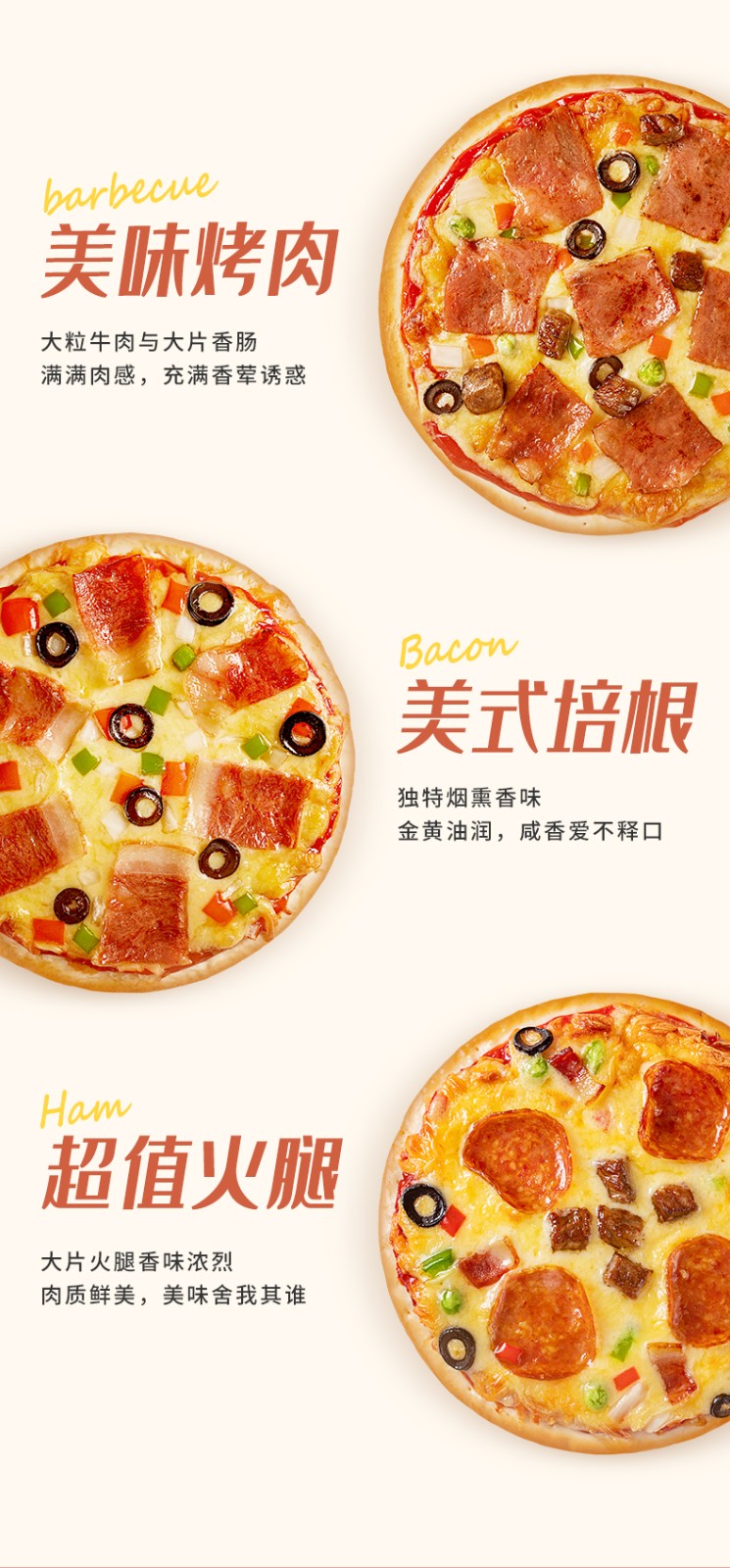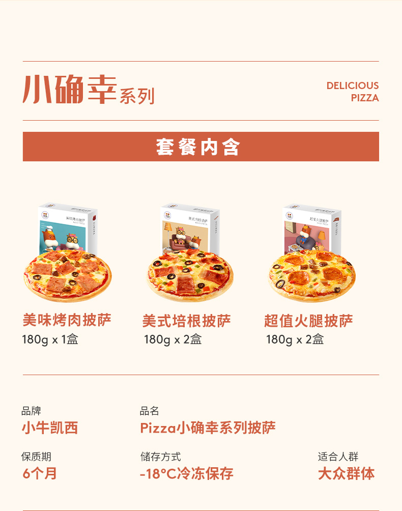 小牛凯西披萨套餐180g*5(烤肉*1+培根*2+火腿*2)赠滚刀