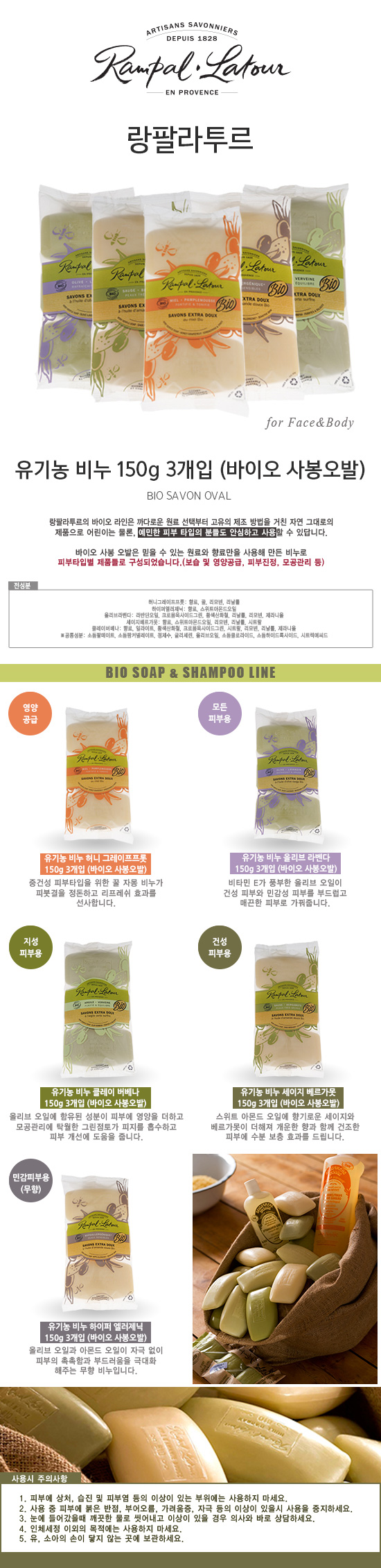 Rampal latour Organic Soap 150g3ea (Bio Sabong Oval)多种款式JPY带授权招加盟代理