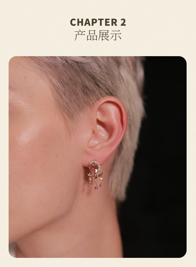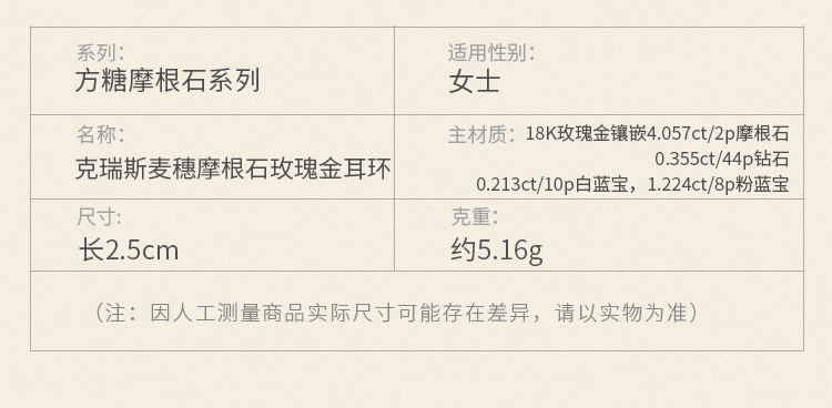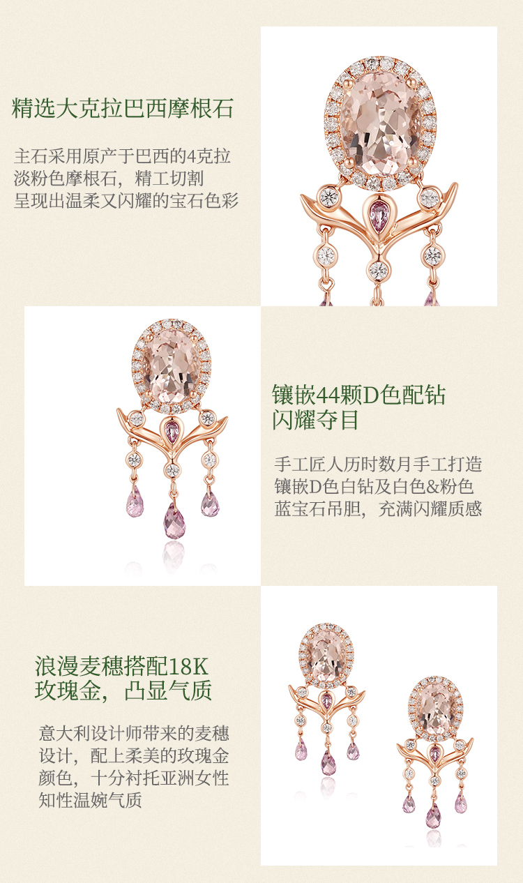 Sugar Morganite方糖摩根石系列 | 克瑞斯麦穗摩根石玫瑰金耳环