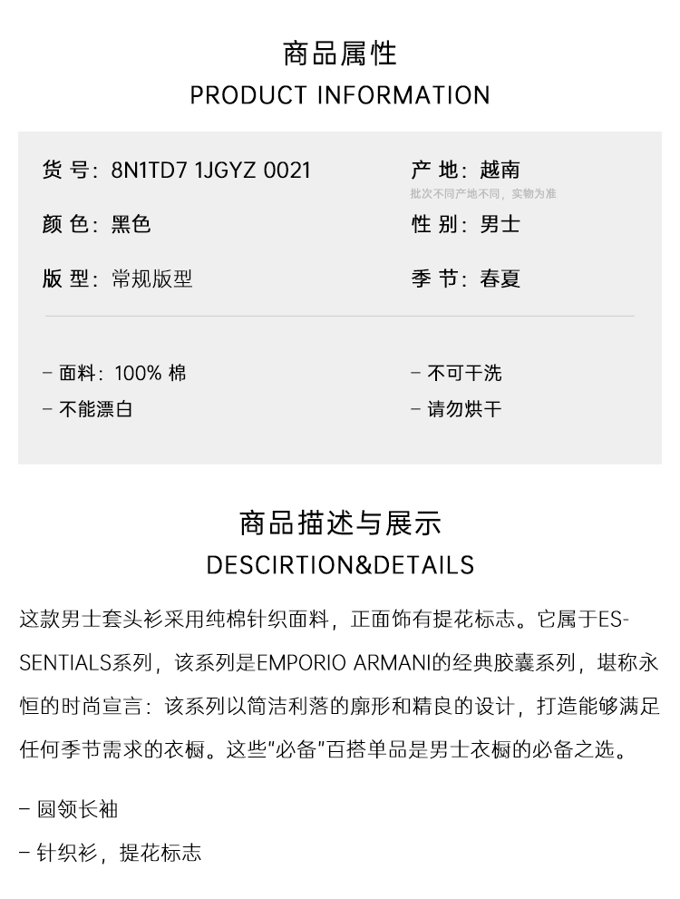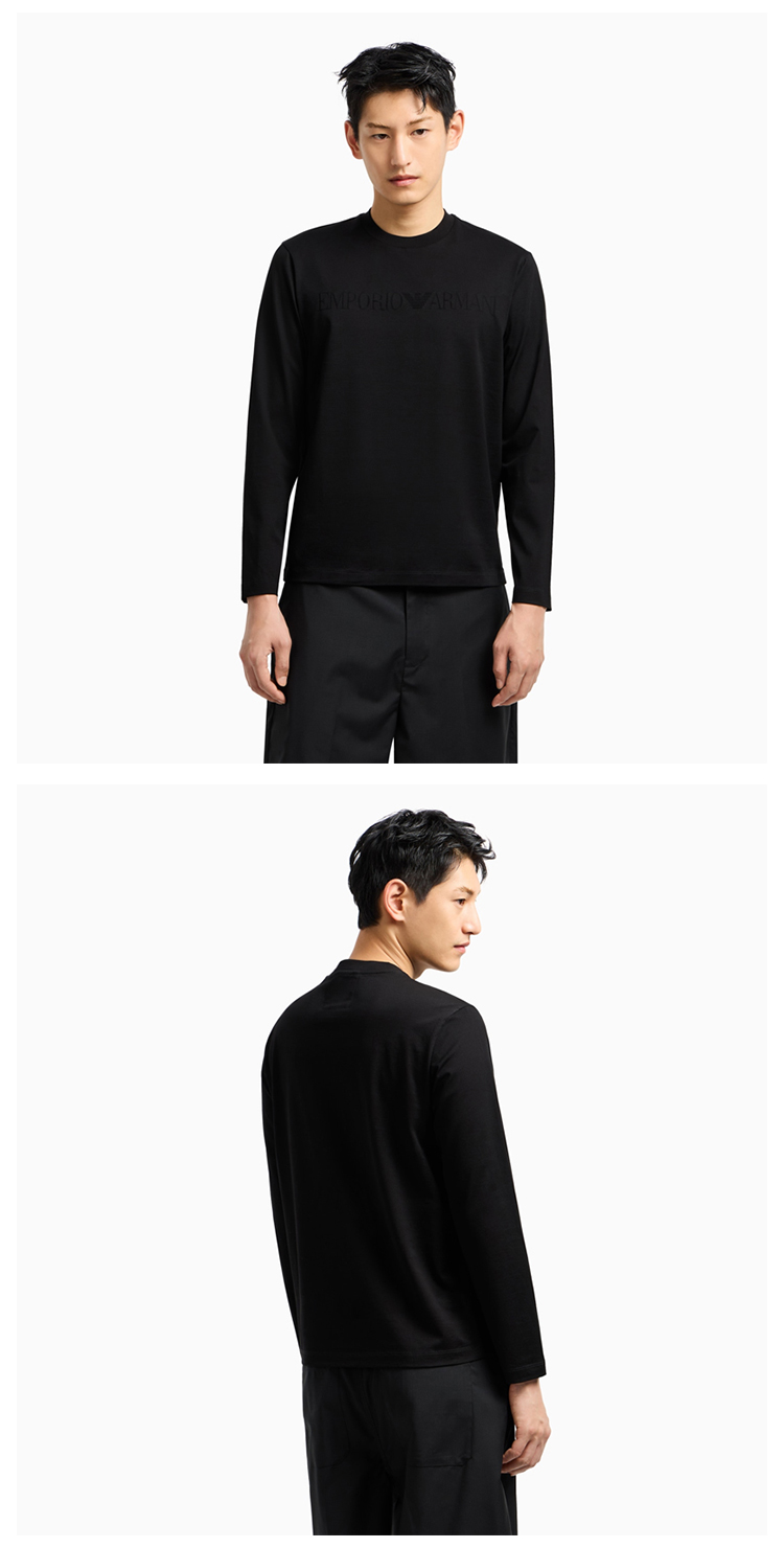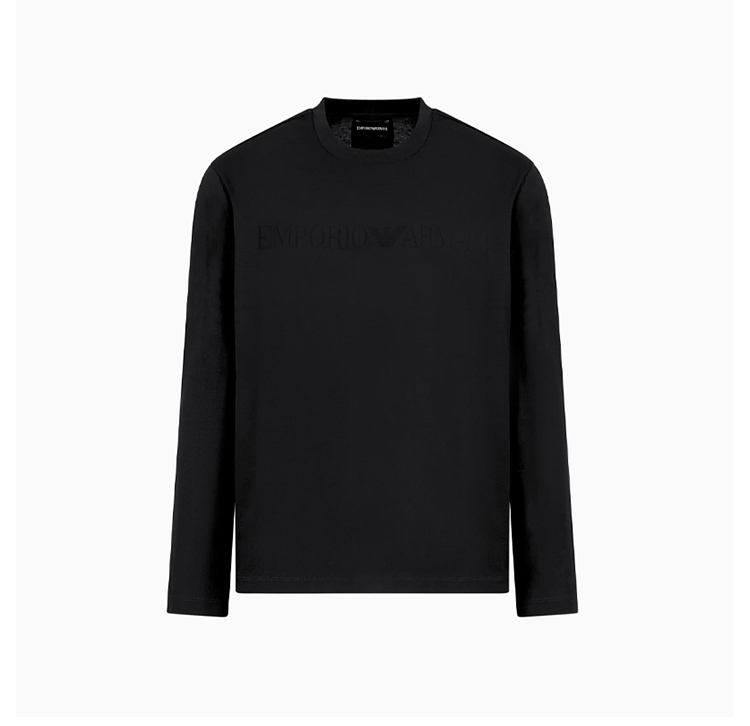 EMPORIO ARMANI 阿玛尼 男士带有提花标志的针织圆领长袖T恤 黑色 8N1TD7 1JGYZ 0021