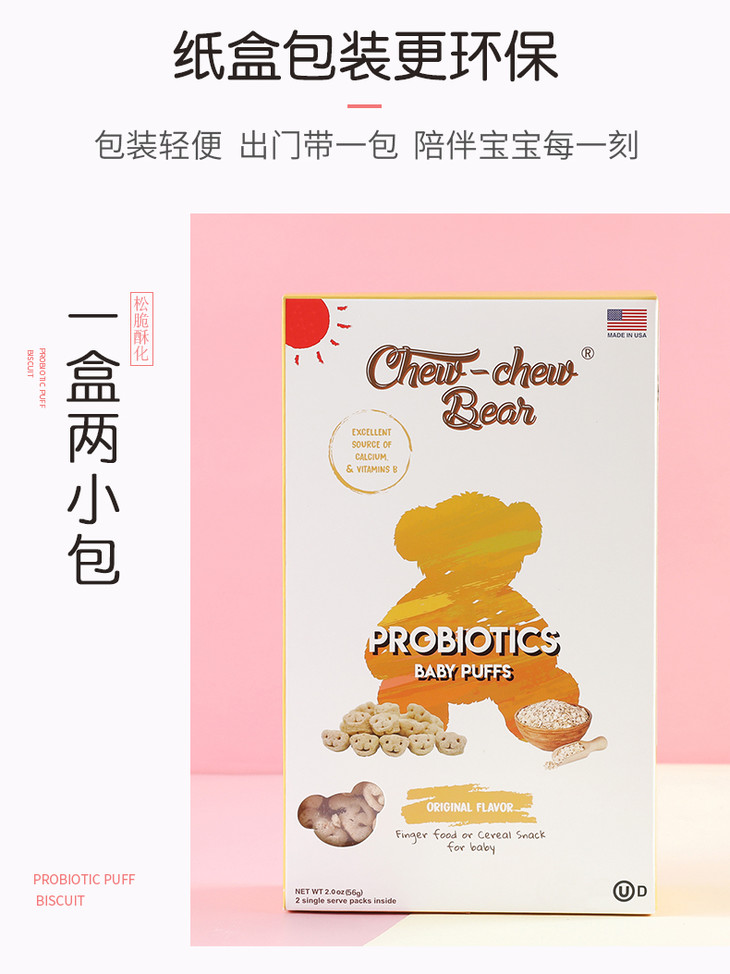 趣趣贝儿原味泡芙米饼(含益生菌)56g/盒