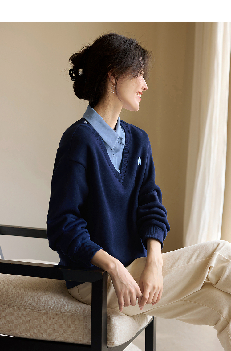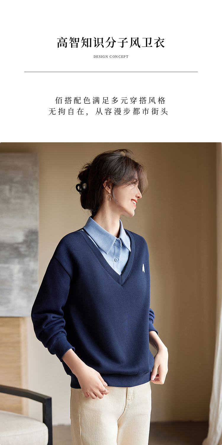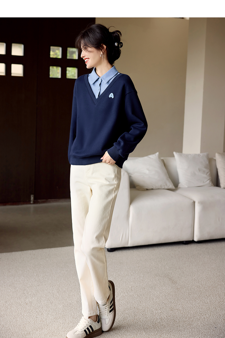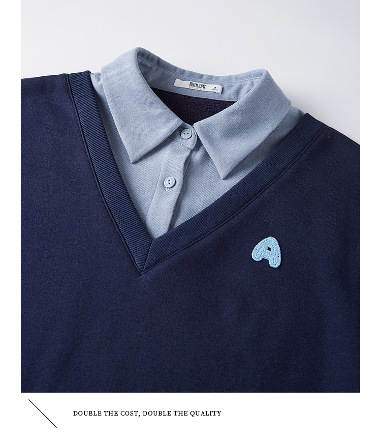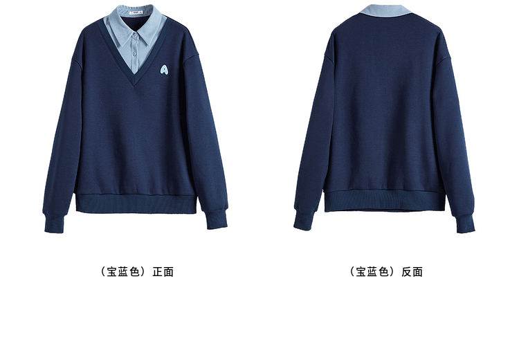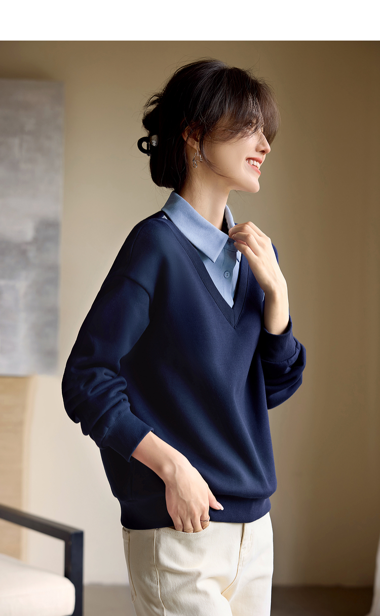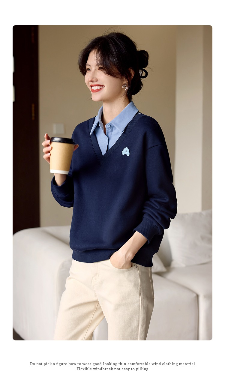 【专属特价】熙世界衬衫翻领假两件卫衣女加绒加厚秋冬学院风套头休闲宽松上衣