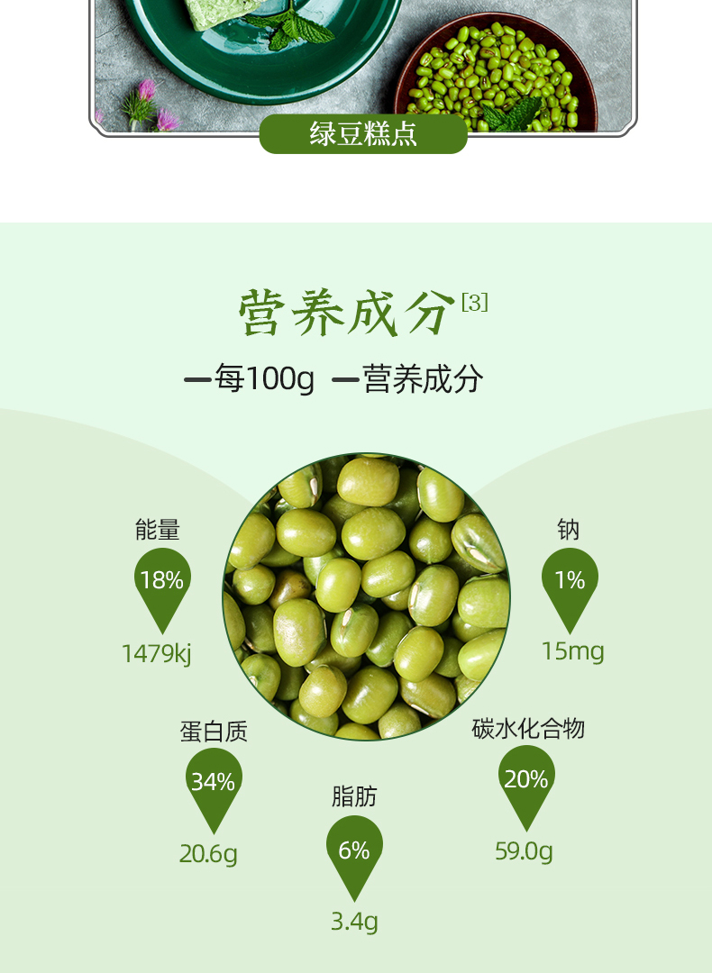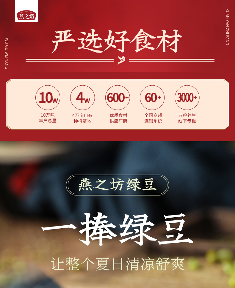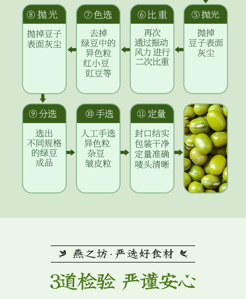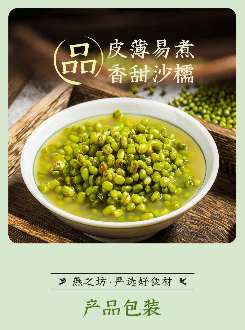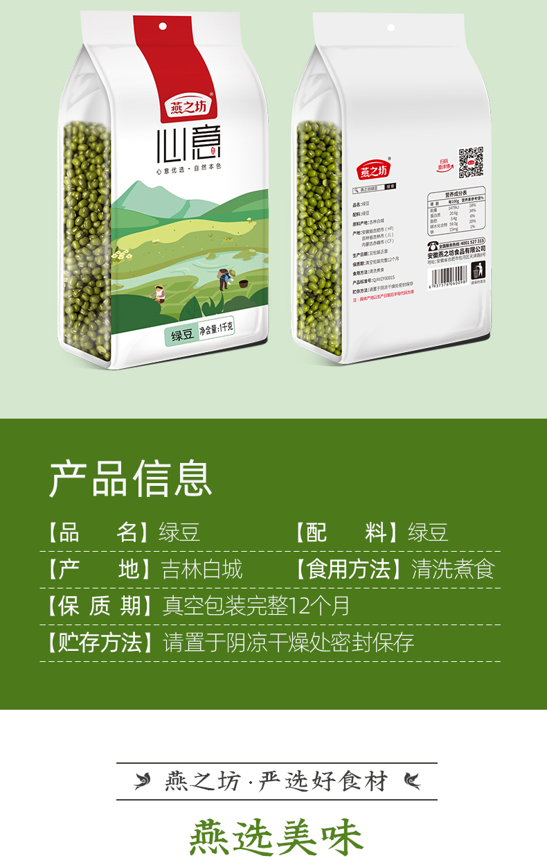 燕之坊 东北绿豆 1kg(无添加 五谷杂粮粗粮 真空装)