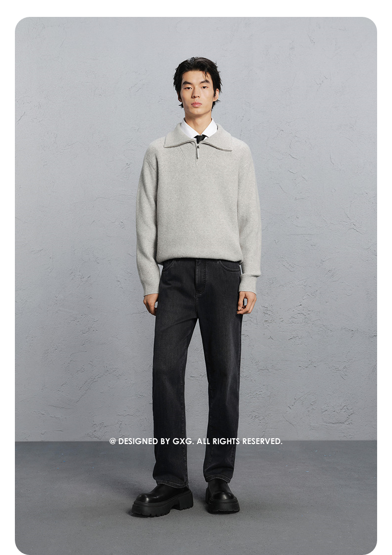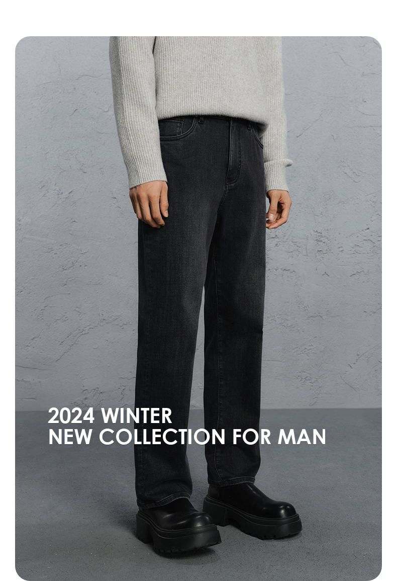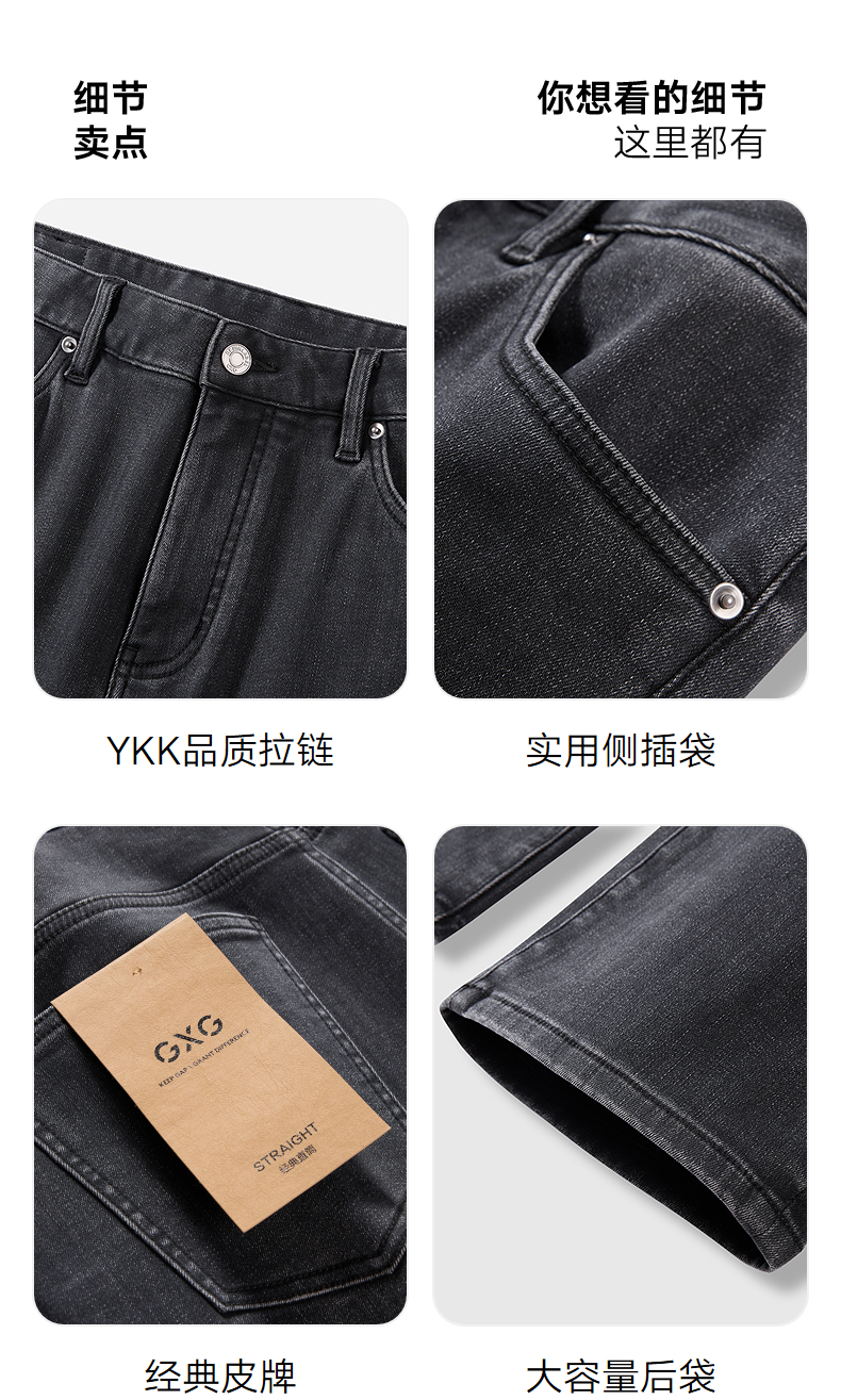 GXG男装 深灰色弹力牛仔裤通勤男长裤 24年冬G24X054047