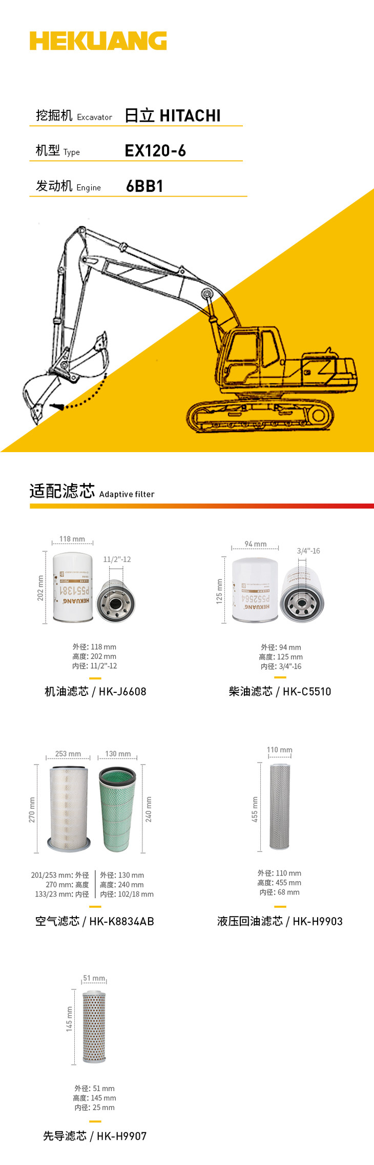 日立EX120-6(6BB1)挖掘机滤芯 机油柴油空气滤芯 液压油先导滤芯