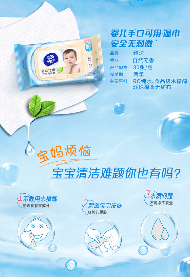 【ZY25】维达纯水湿巾80片/包