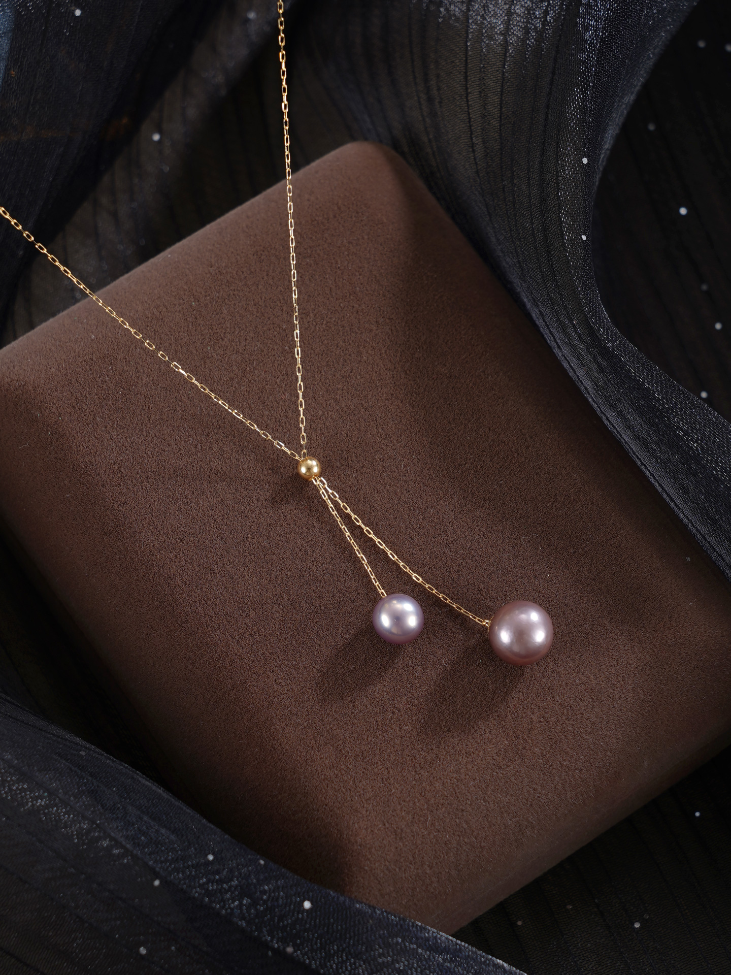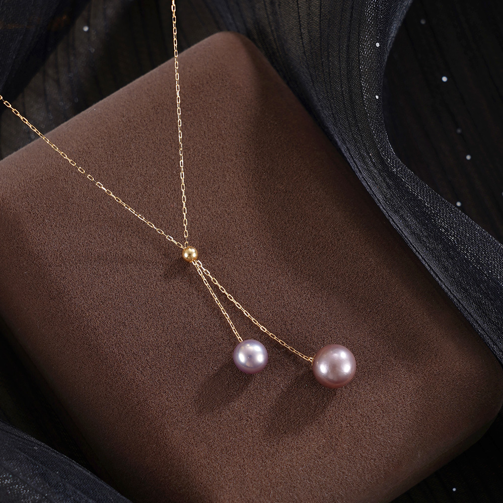 子佩集【流年风吟】G18K珍珠惜王妃项链【MLKJXL009】6-7.5mm珠镀金双色吊球紫白2601