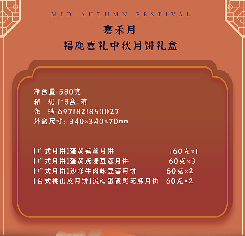 【礼上月梢】【中秋月饼】嘉禾福鹿喜礼580g