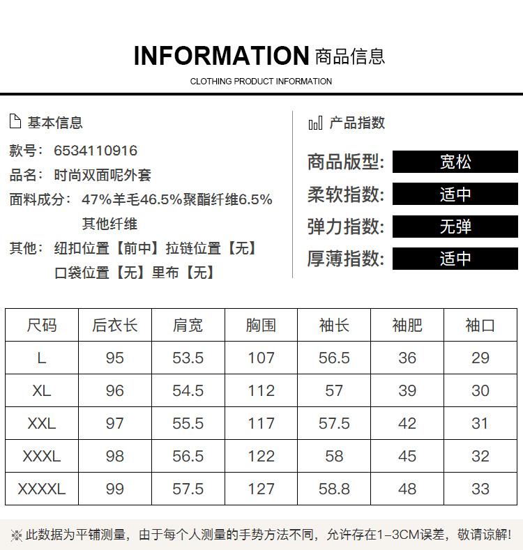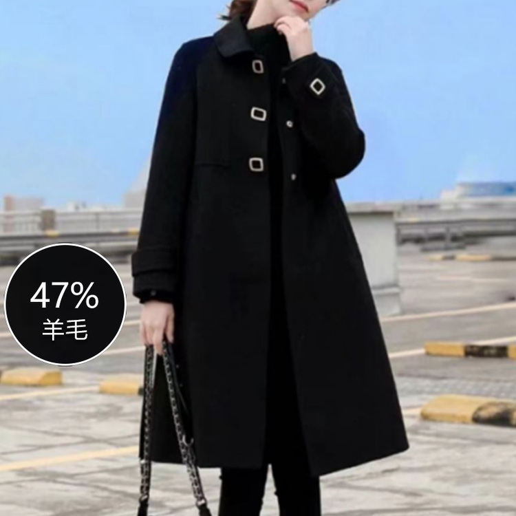 奢姿2024年冬装新款大码女装中长款双面呢外套胖妹妹翻领气质外套6534110916