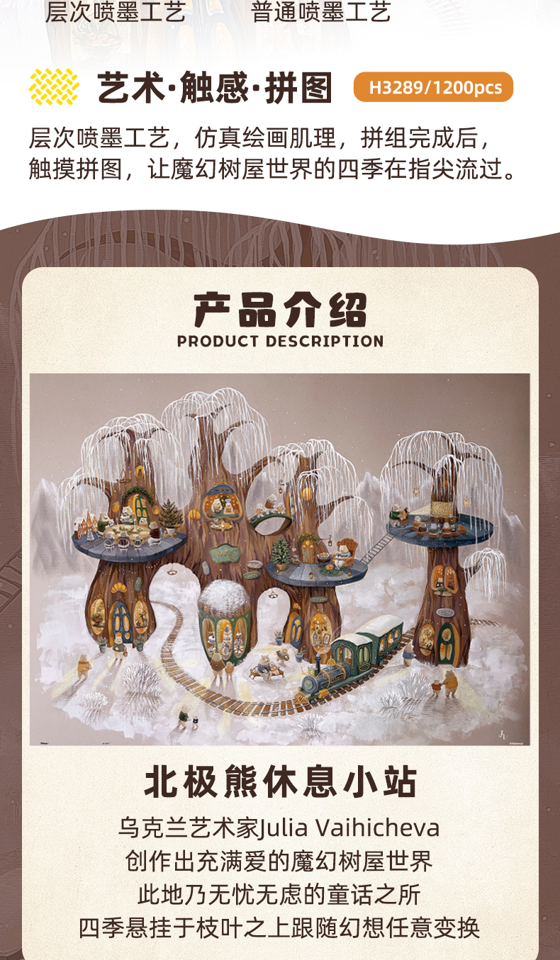 【折扣商品 不退不换】1200片 塑料平面拼图 H3289 艺术触感系列-Julia Vaihicheva-北极熊休憩小站
