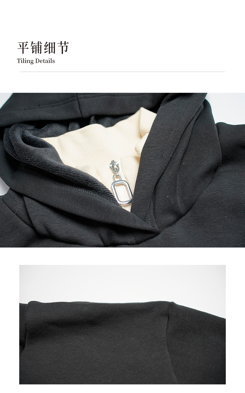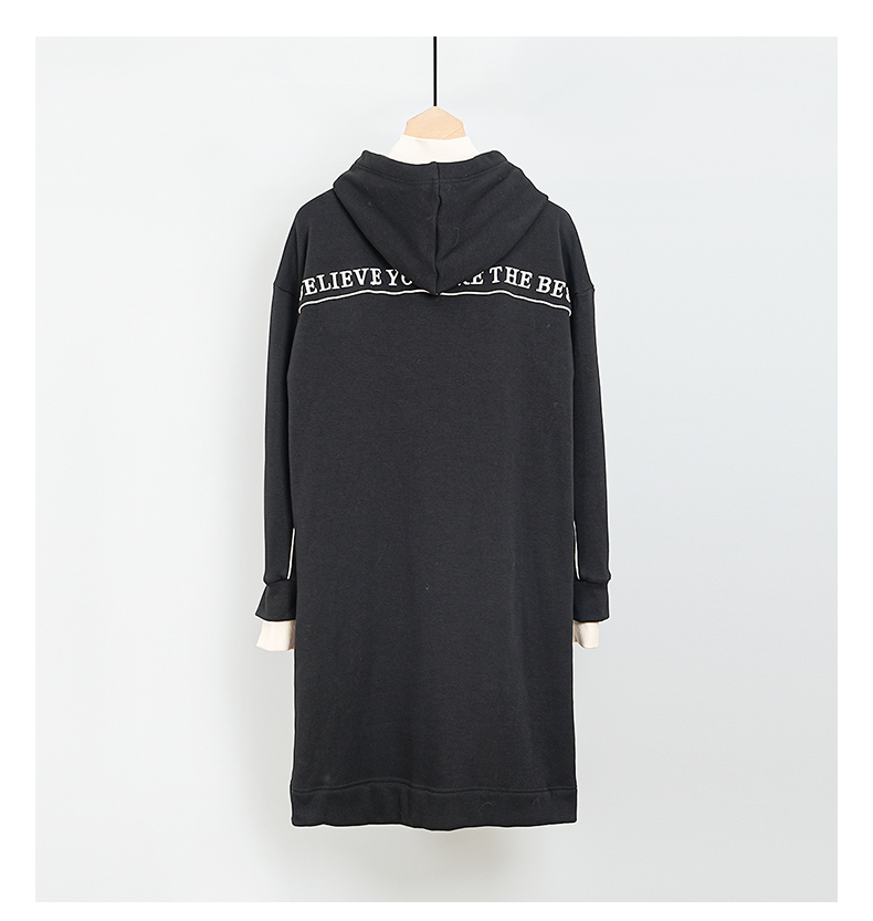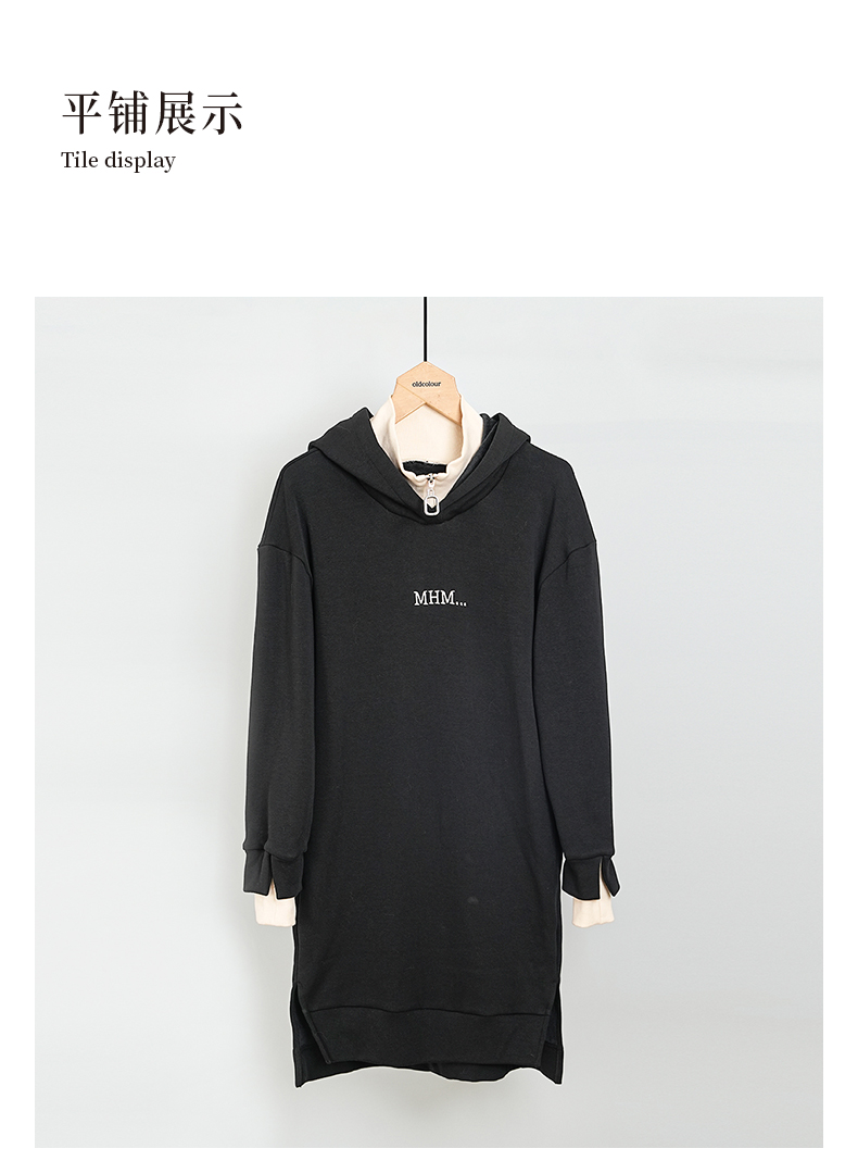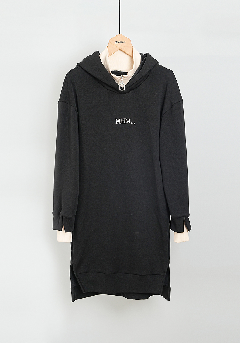 oldcolour黑色气质宽松设计感拼接简约休闲长袖卫衣连衣裙女L42103225
