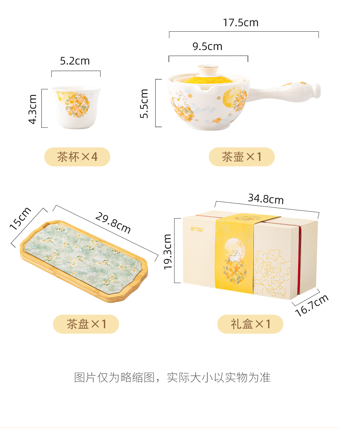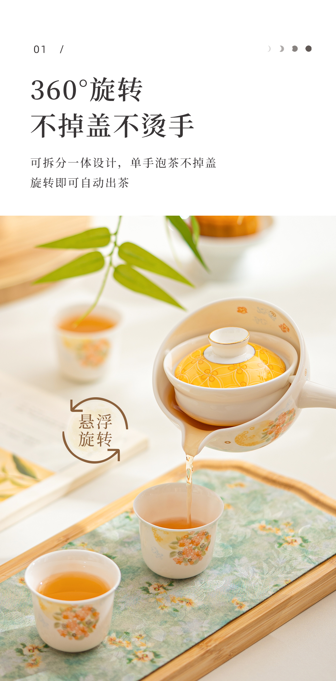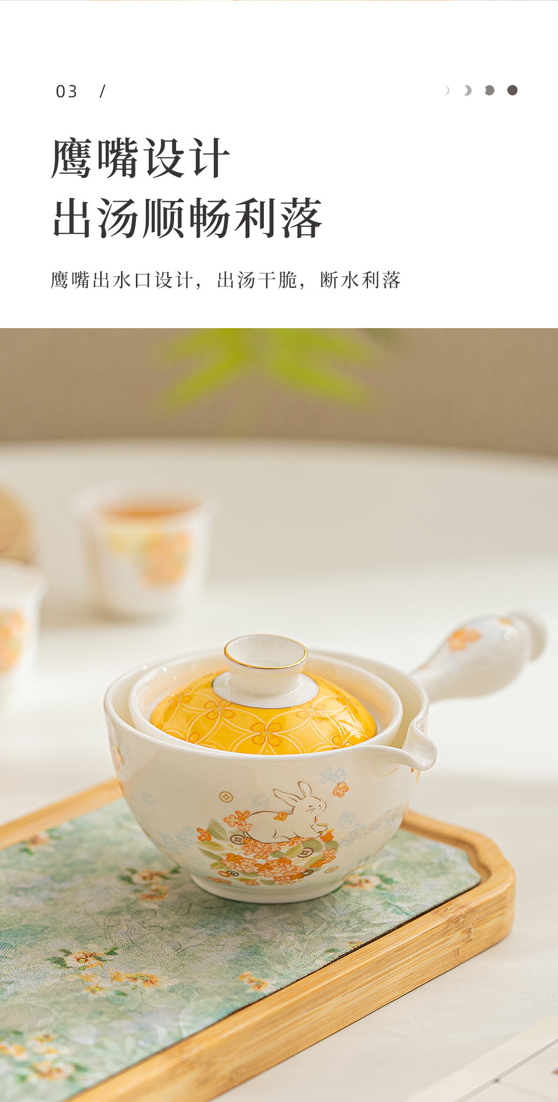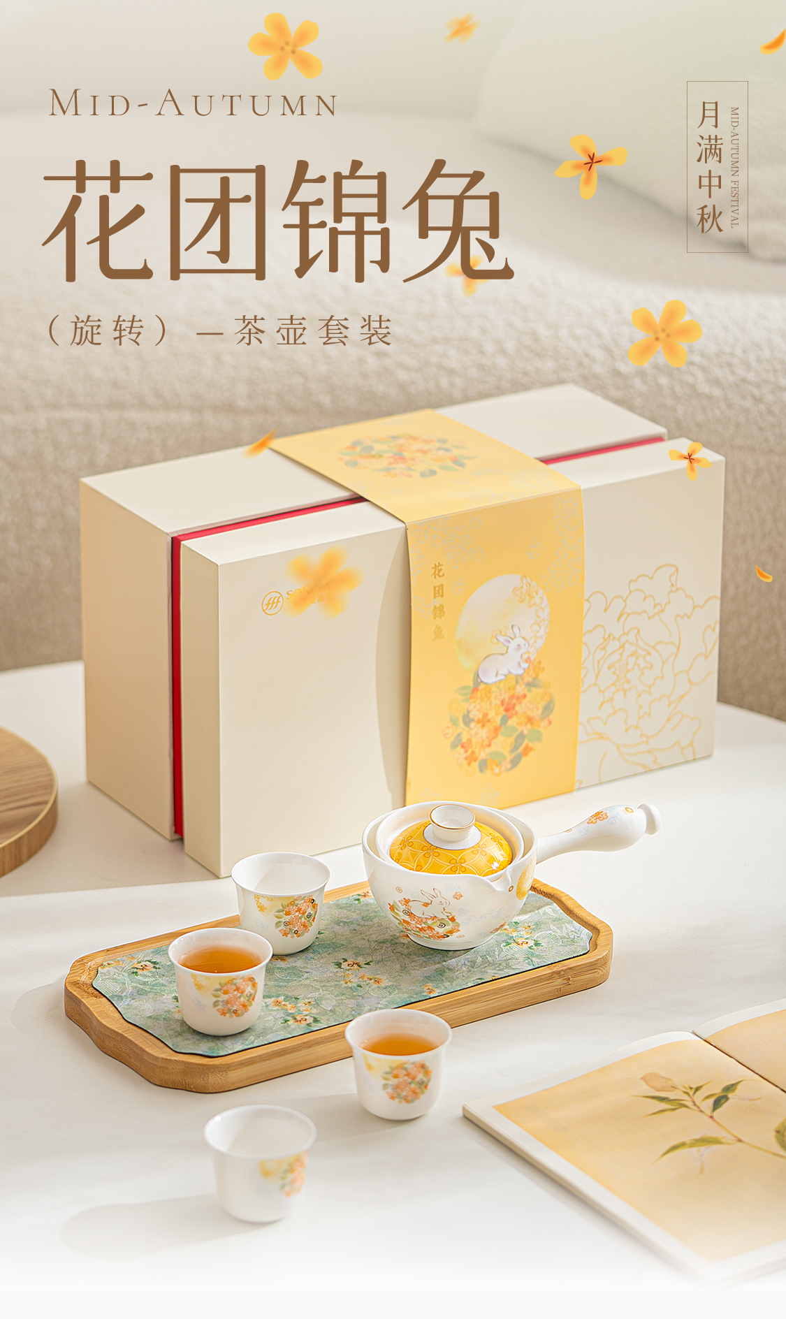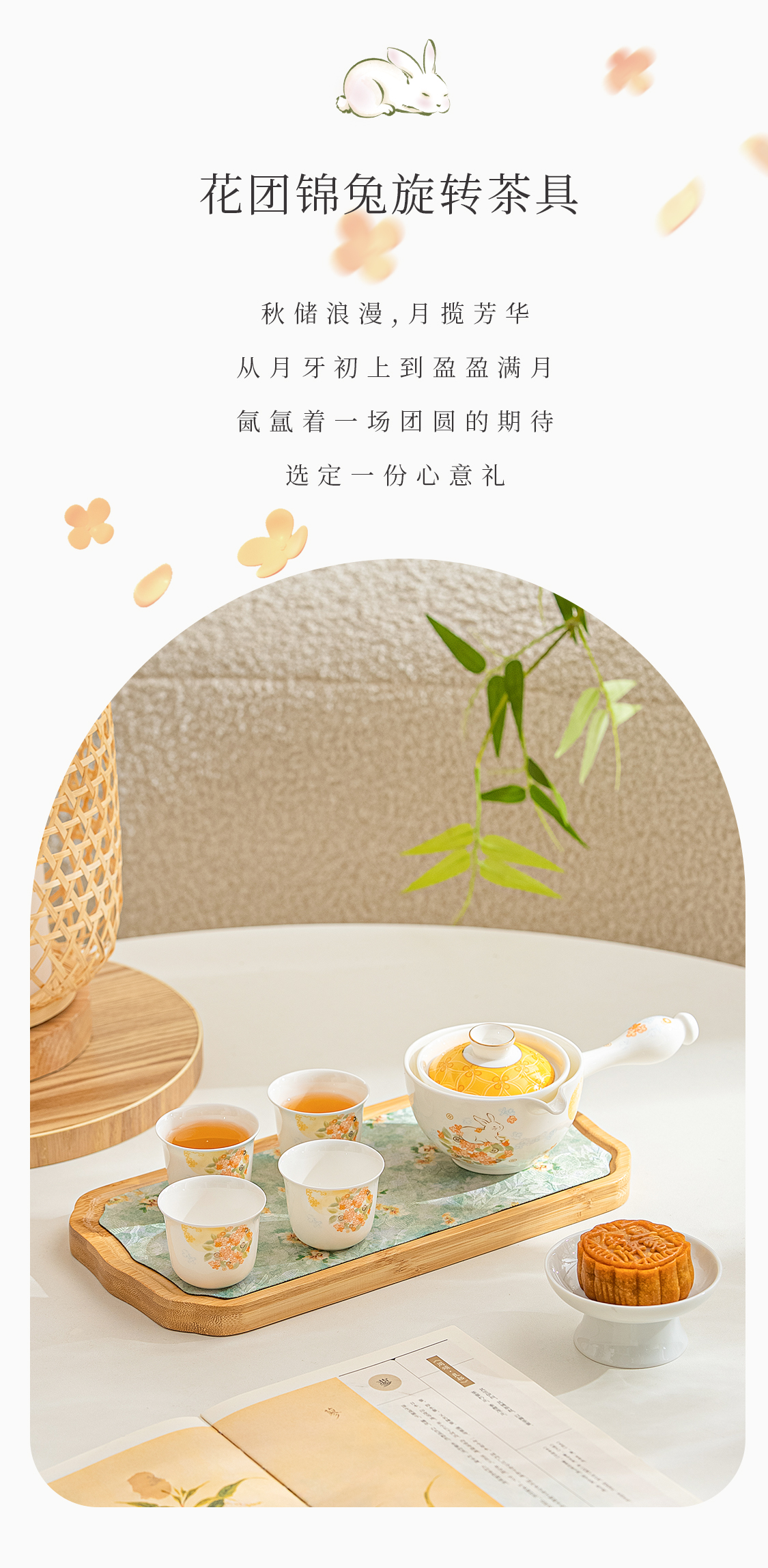 5头花团锦兔旋转茶具