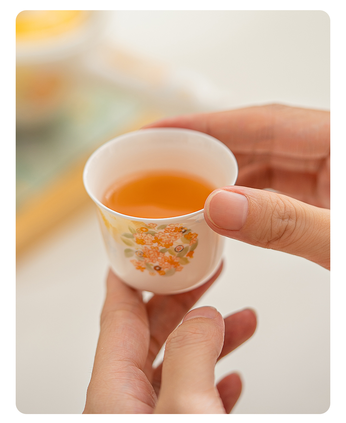 釉下手绘复古花饮盖杯
