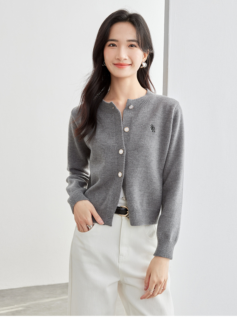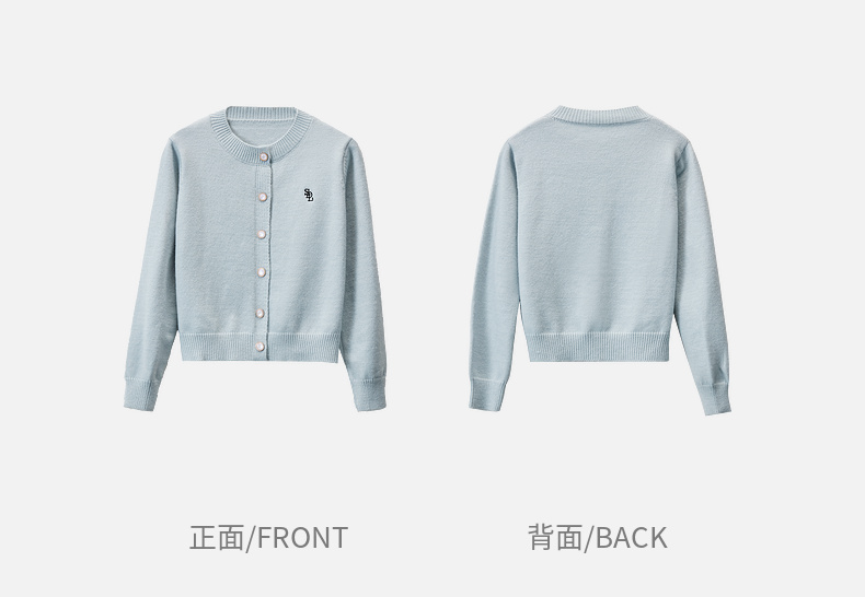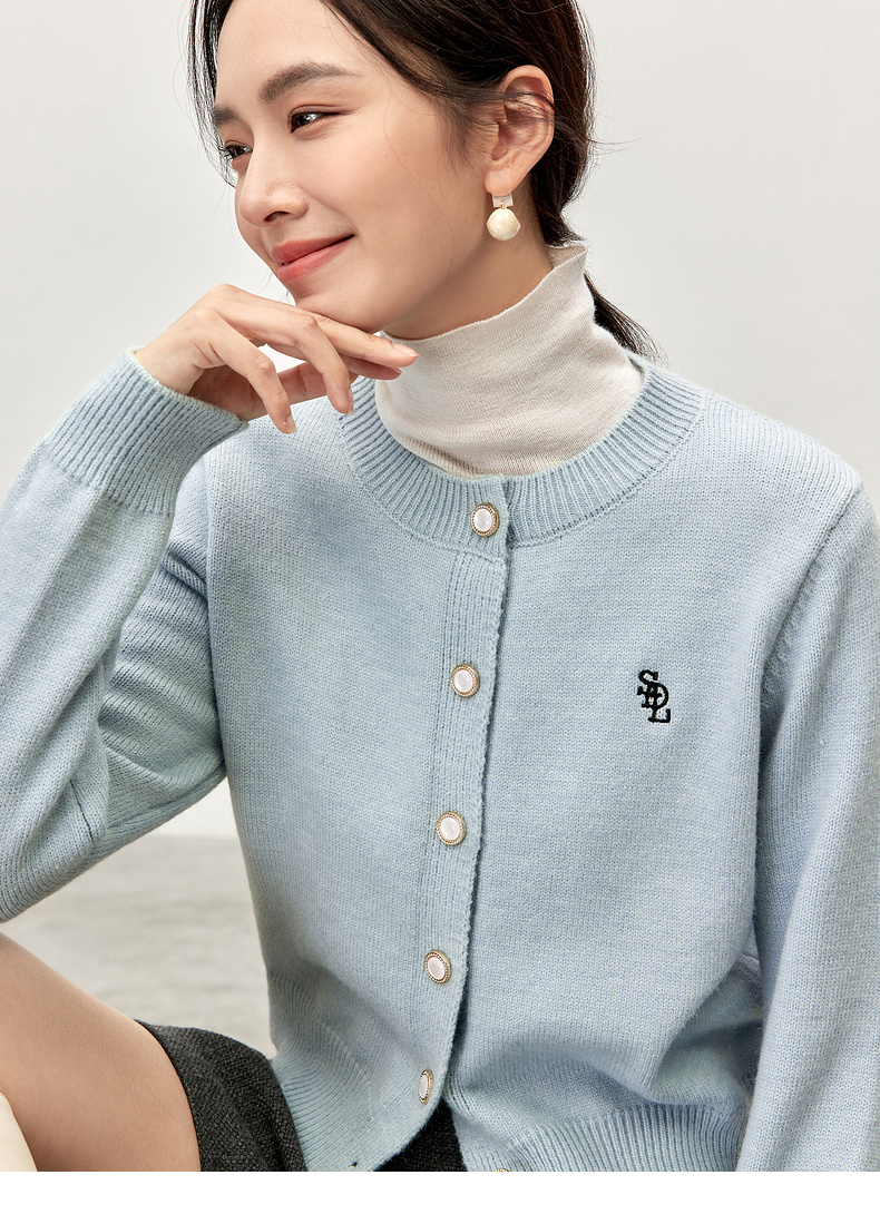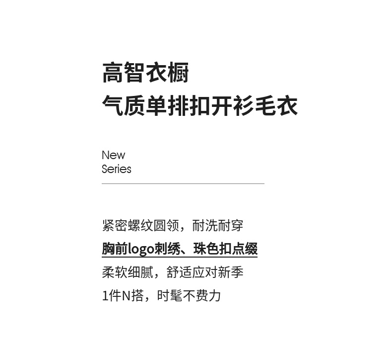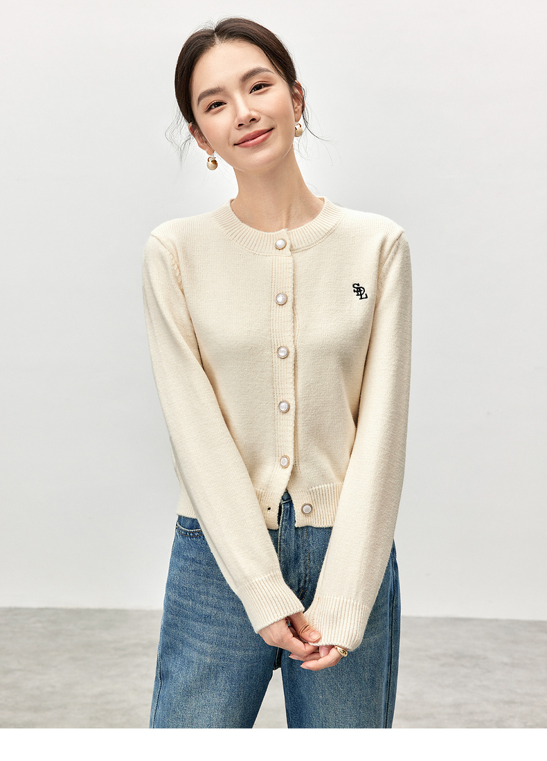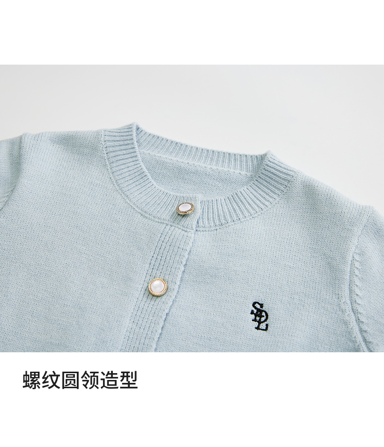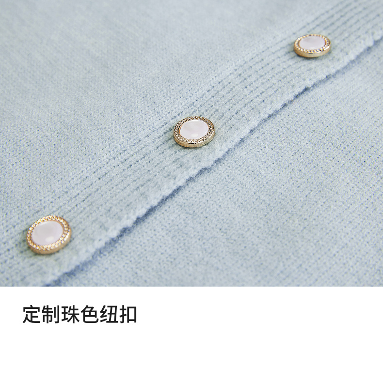 【内购】气质通勤舒适休闲螺纹圆领圆领单排扣定制珠色扣弹力长袖开衫毛衣-W44E57307