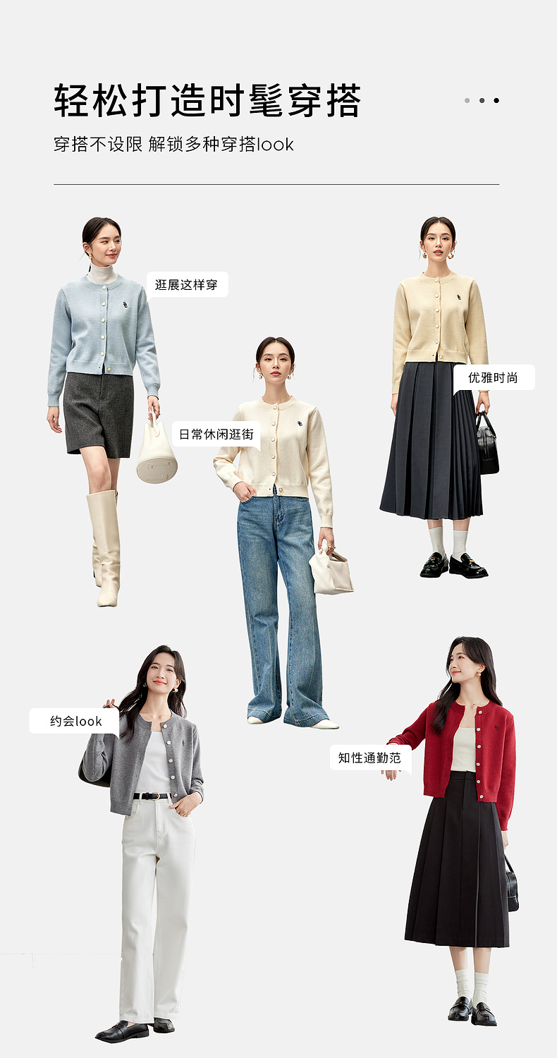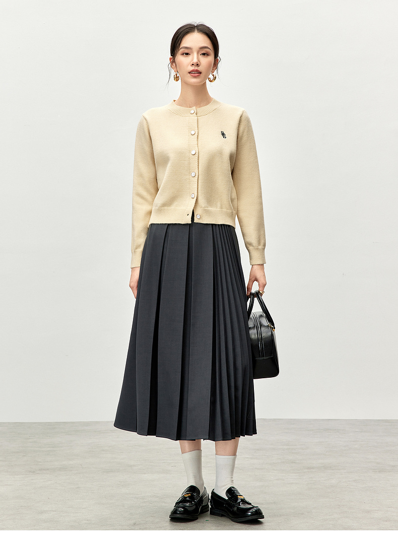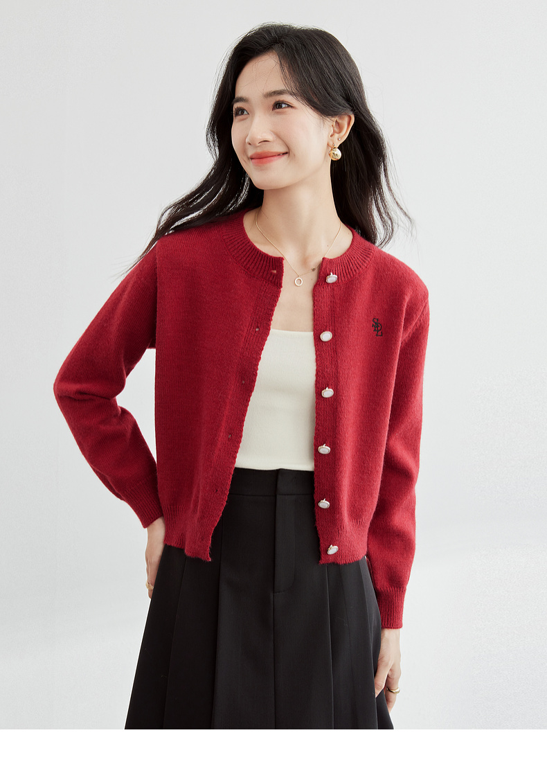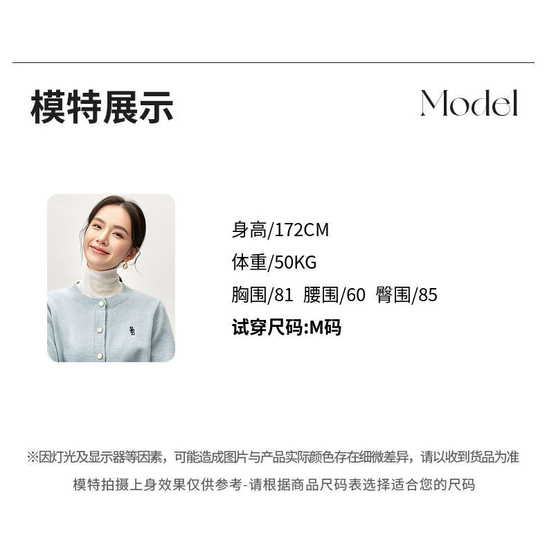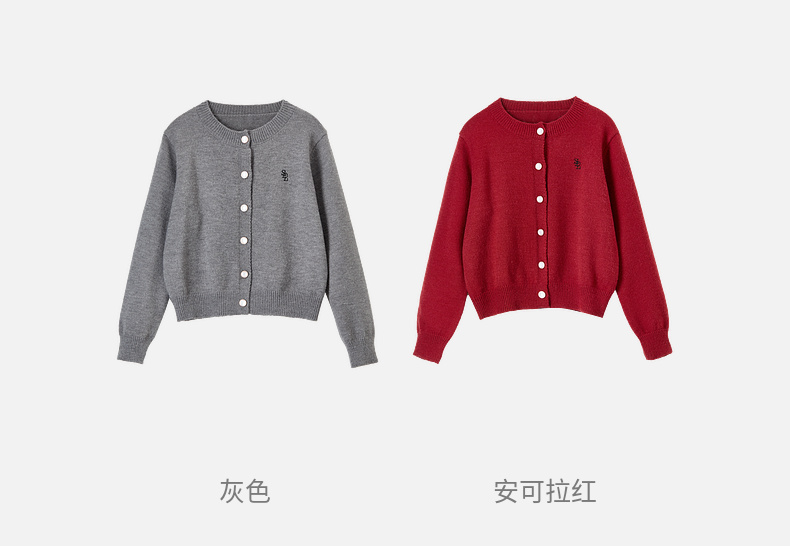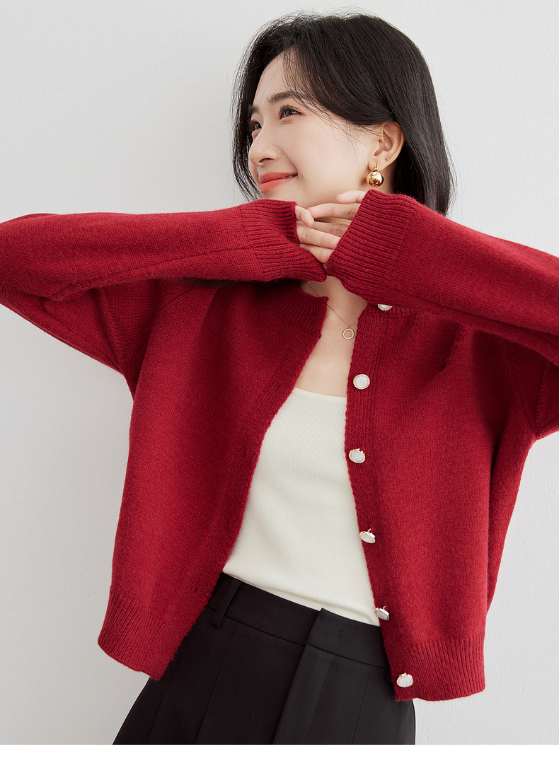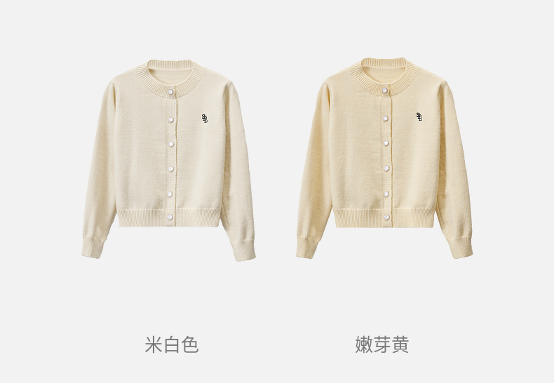 【内购】气质通勤舒适休闲螺纹圆领圆领单排扣定制珠色扣弹力长袖开衫毛衣-W44E57307