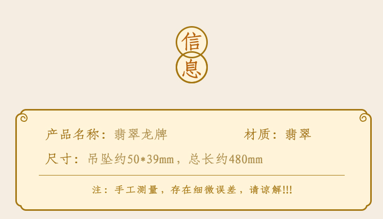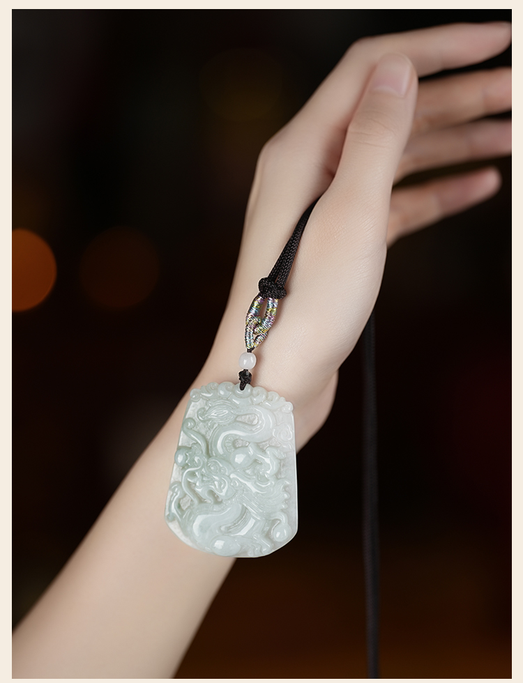 天然翡翠龙牌吊坠玉坠挂件项链百搭质感男女同款