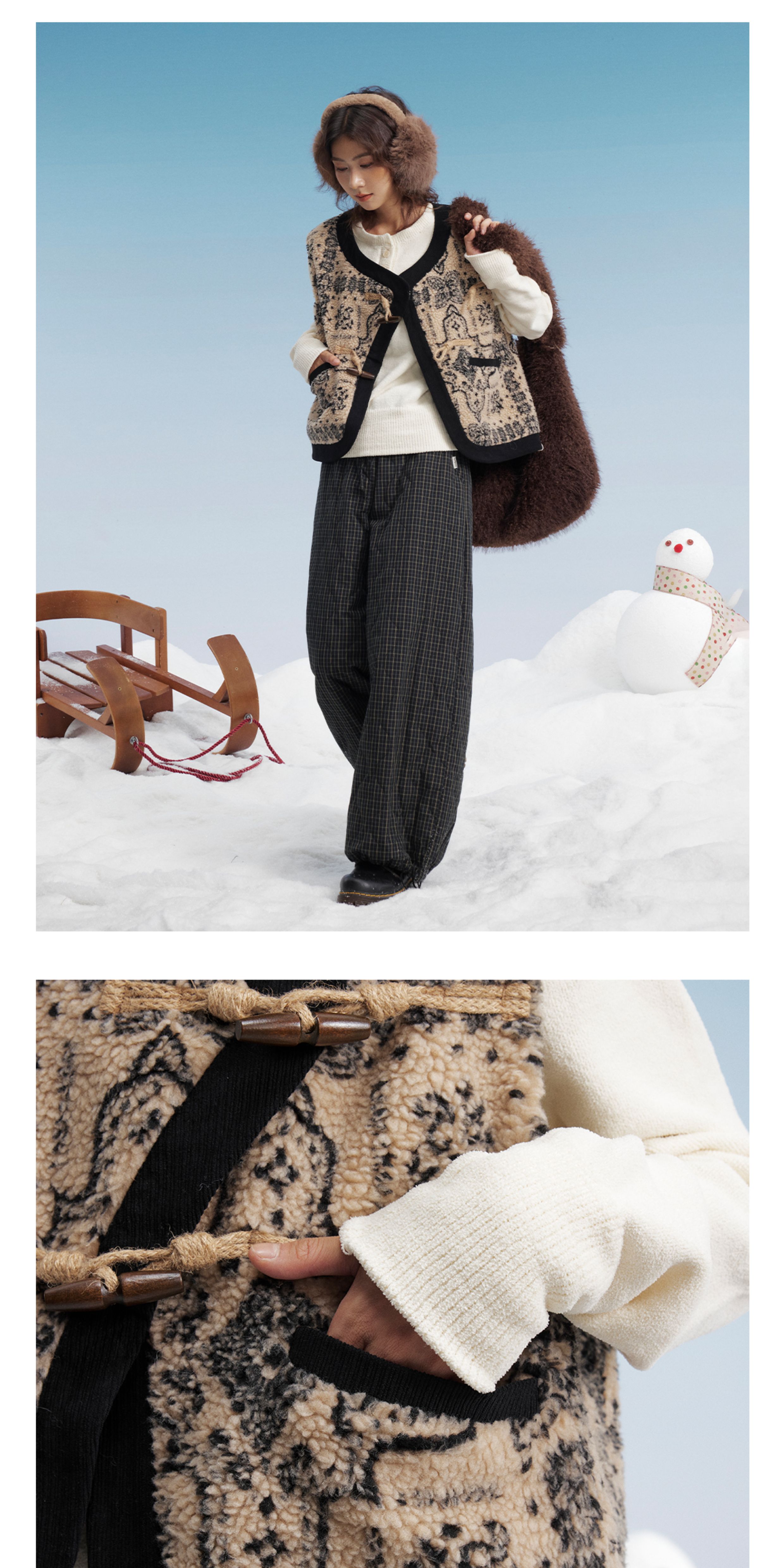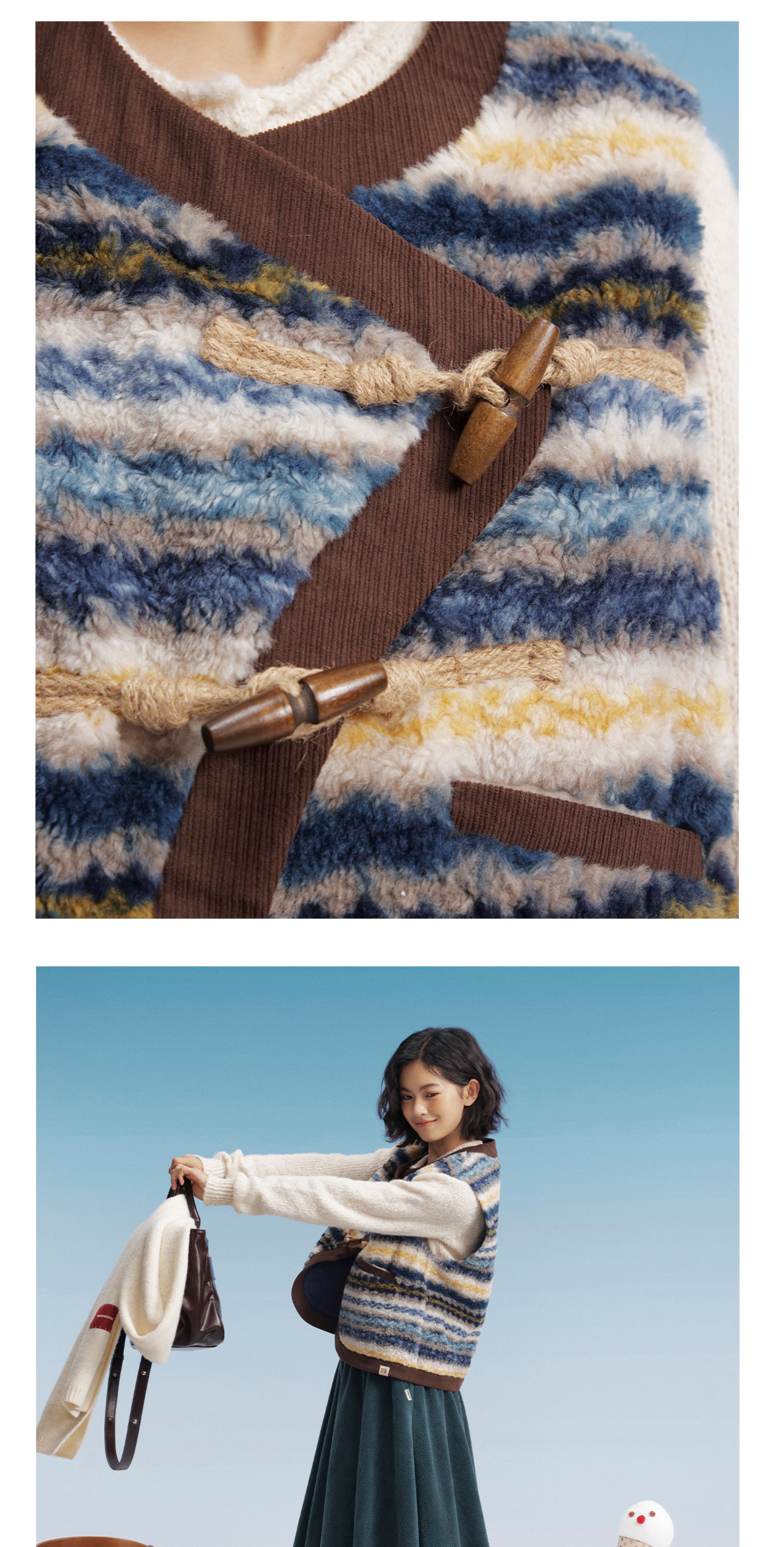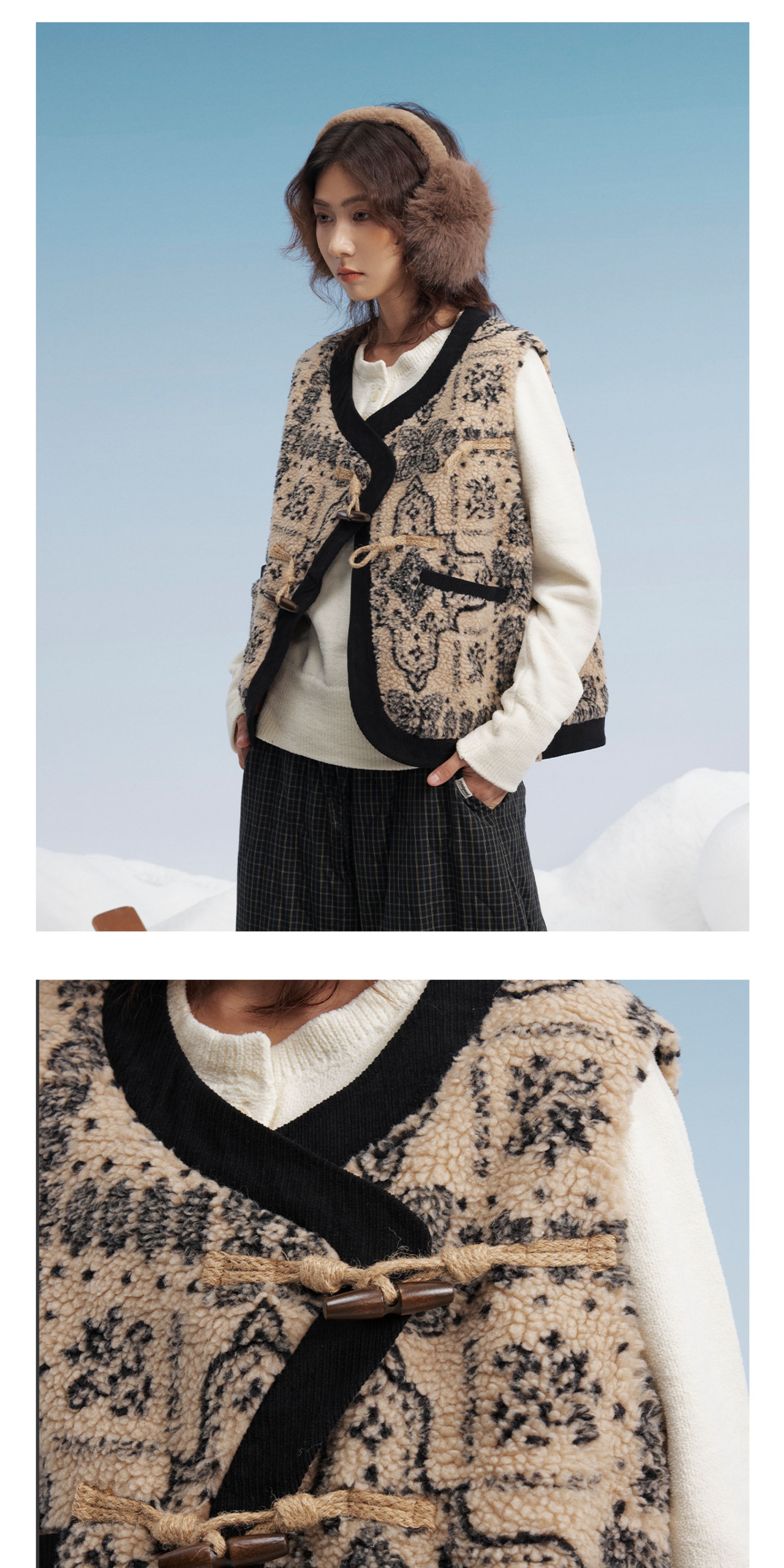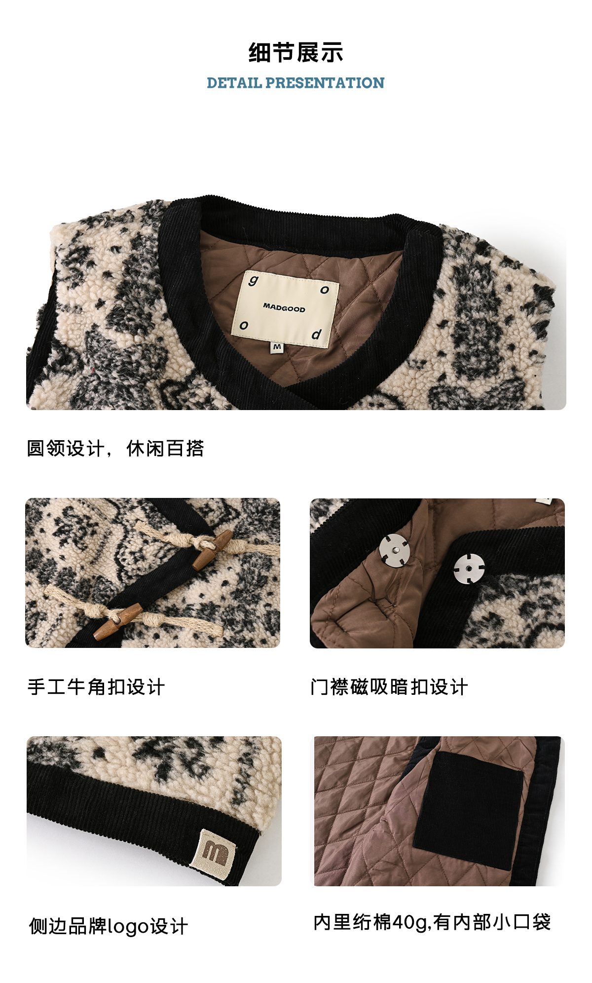马得工地/MDGDMJ141164/不规则门襟羊羔毛拼接马甲