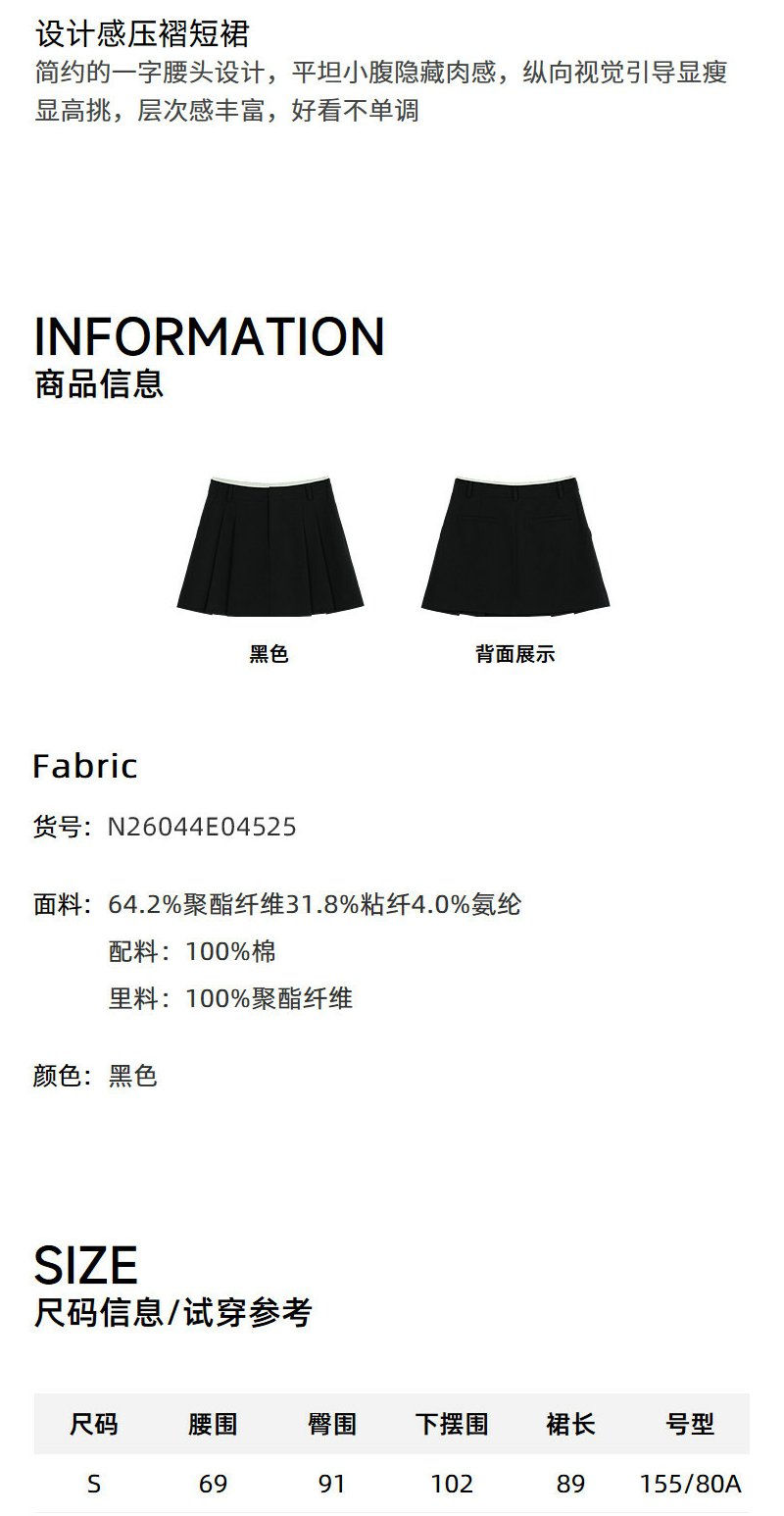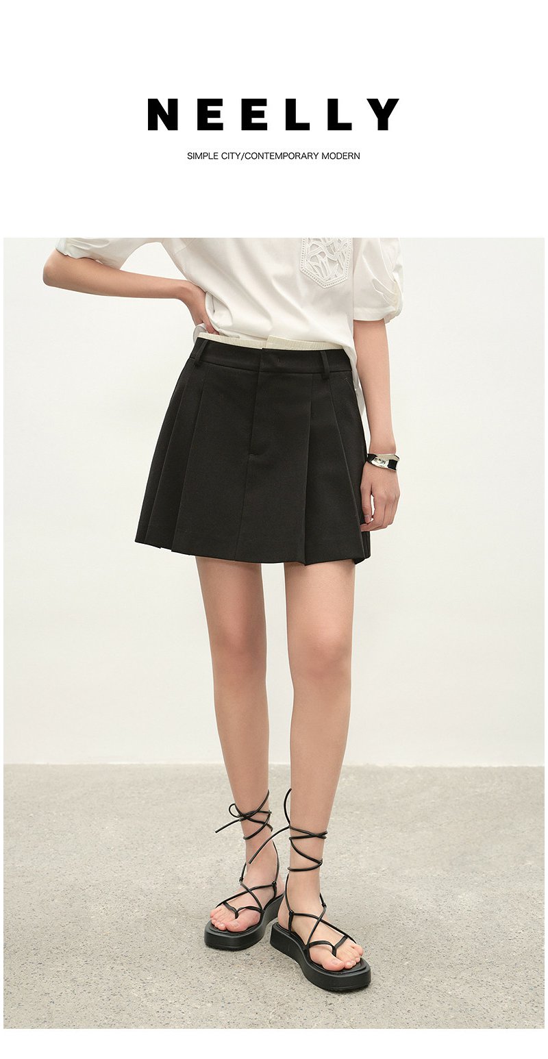 NEELLY纳俪商场同款夏季新款经典学院风百褶裙女显瘦遮胯百搭短裙N26044E04525