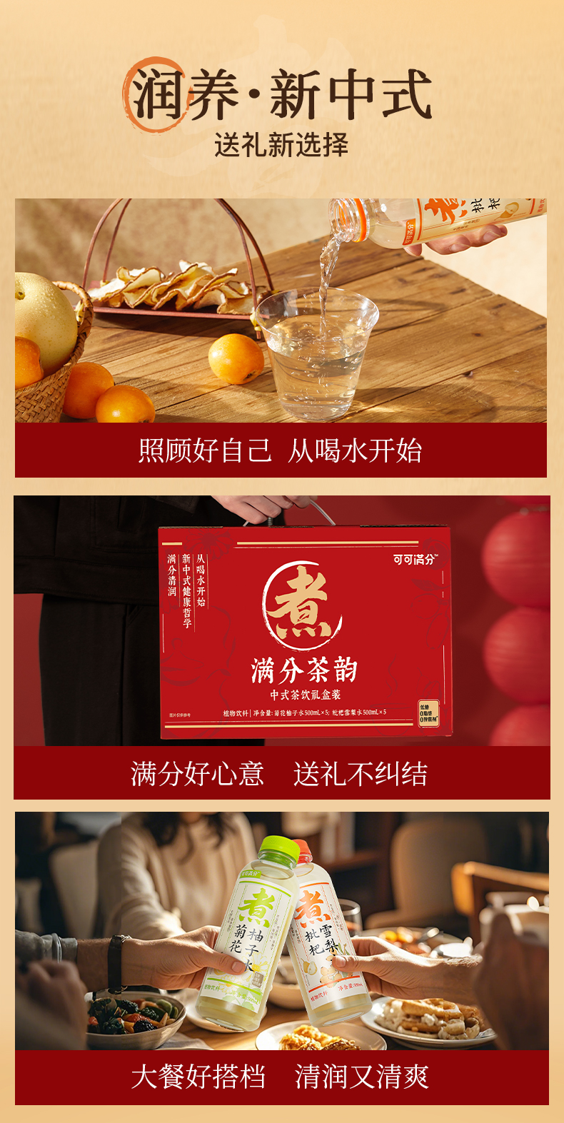 【节日礼盒】可可满分 中式茶饮礼盒+椰子水礼盒 7640ml(赠吨吨杯1)