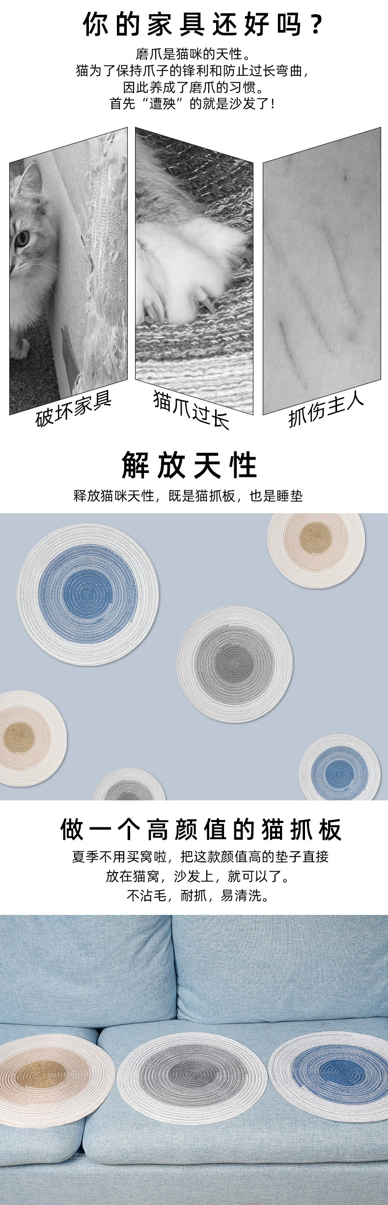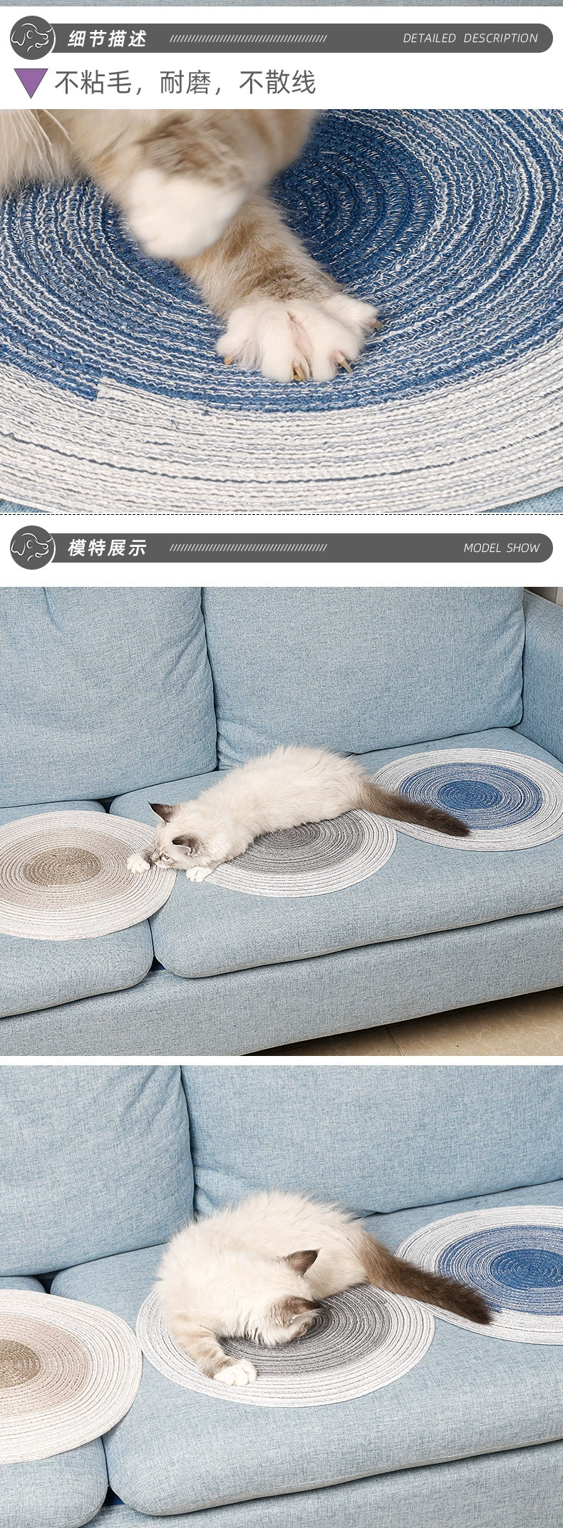 苎zhu麻猫抓垫36*36cm 防抓垫 耐磨 不散线 宠物夏季睡垫批发