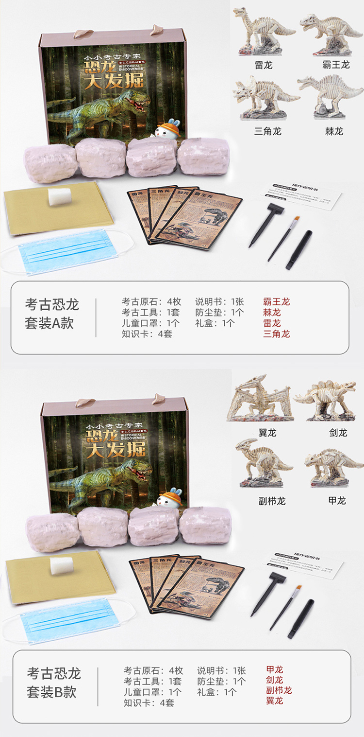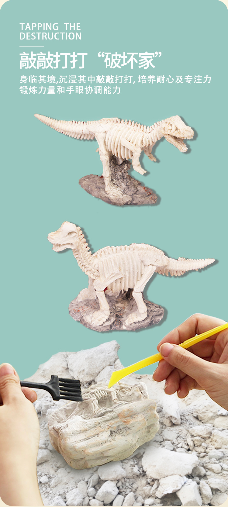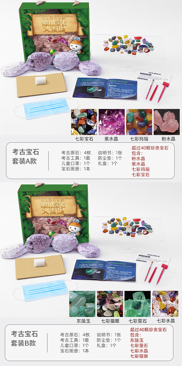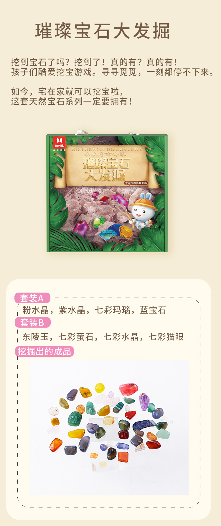 火火兔恐龙化石宝考古宝石水晶挖掘DIY玩具