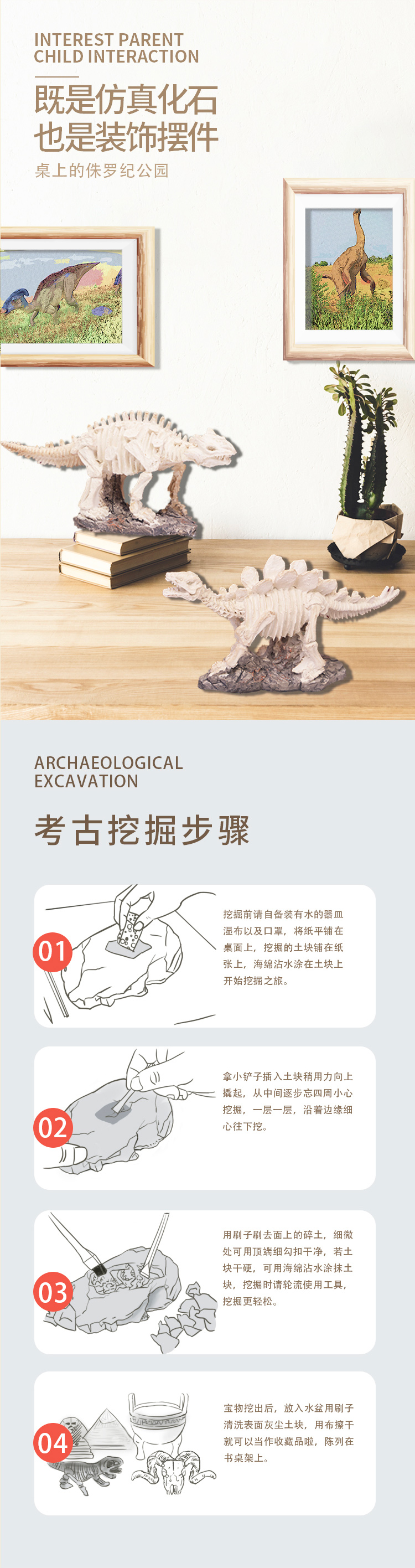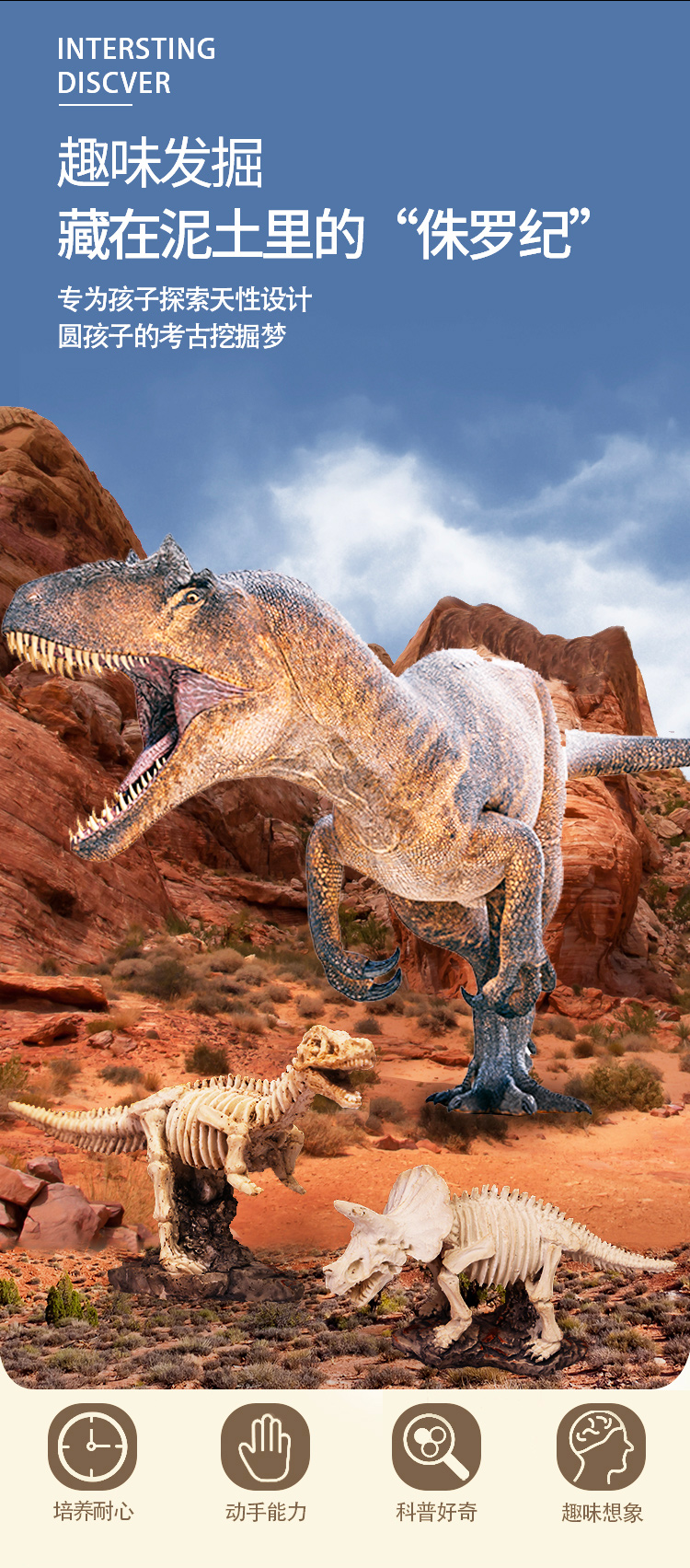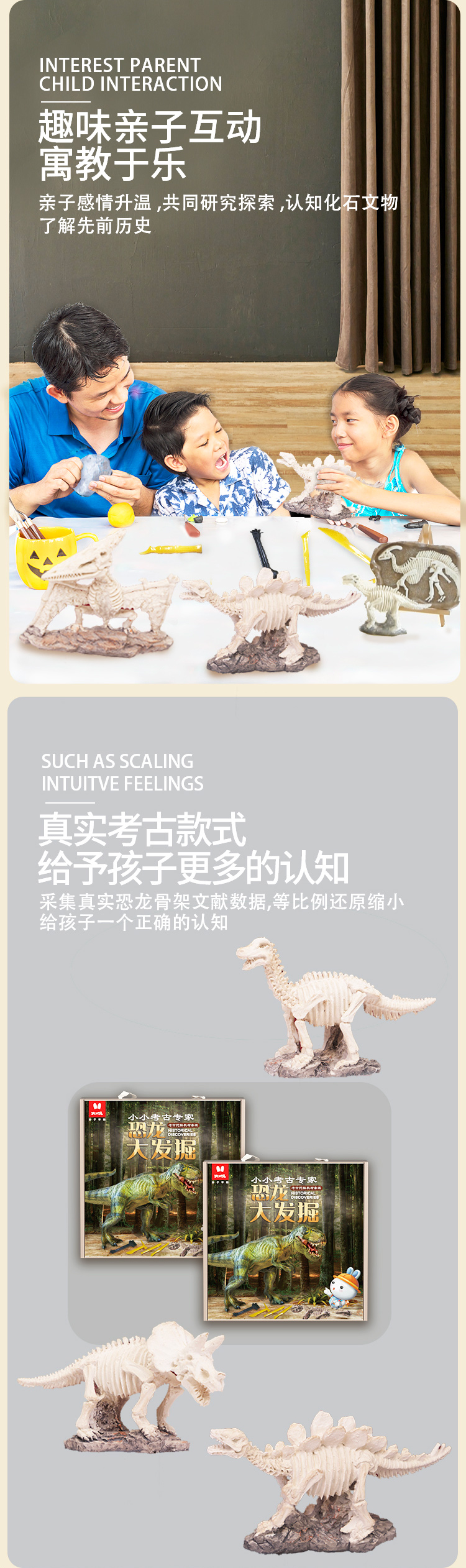 火火兔恐龙化石宝考古宝石水晶挖掘DIY玩具