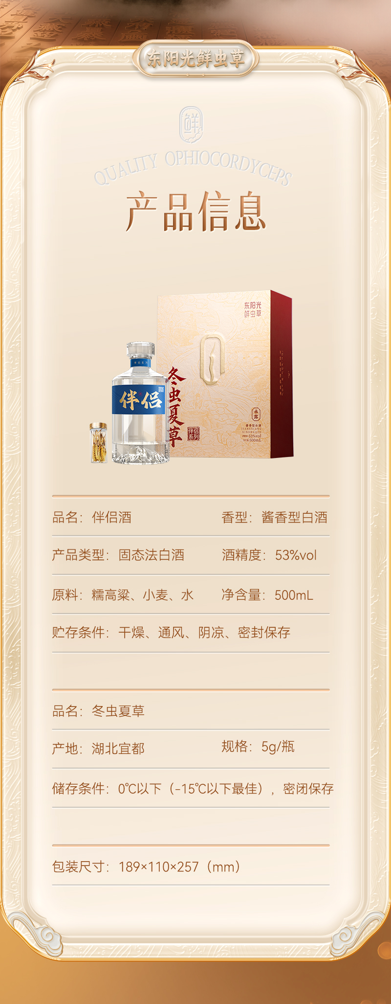 东阳光冬虫夏草伴侣酒礼赠款【承露】500ML酒+5克冬虫夏草(2800-3600)